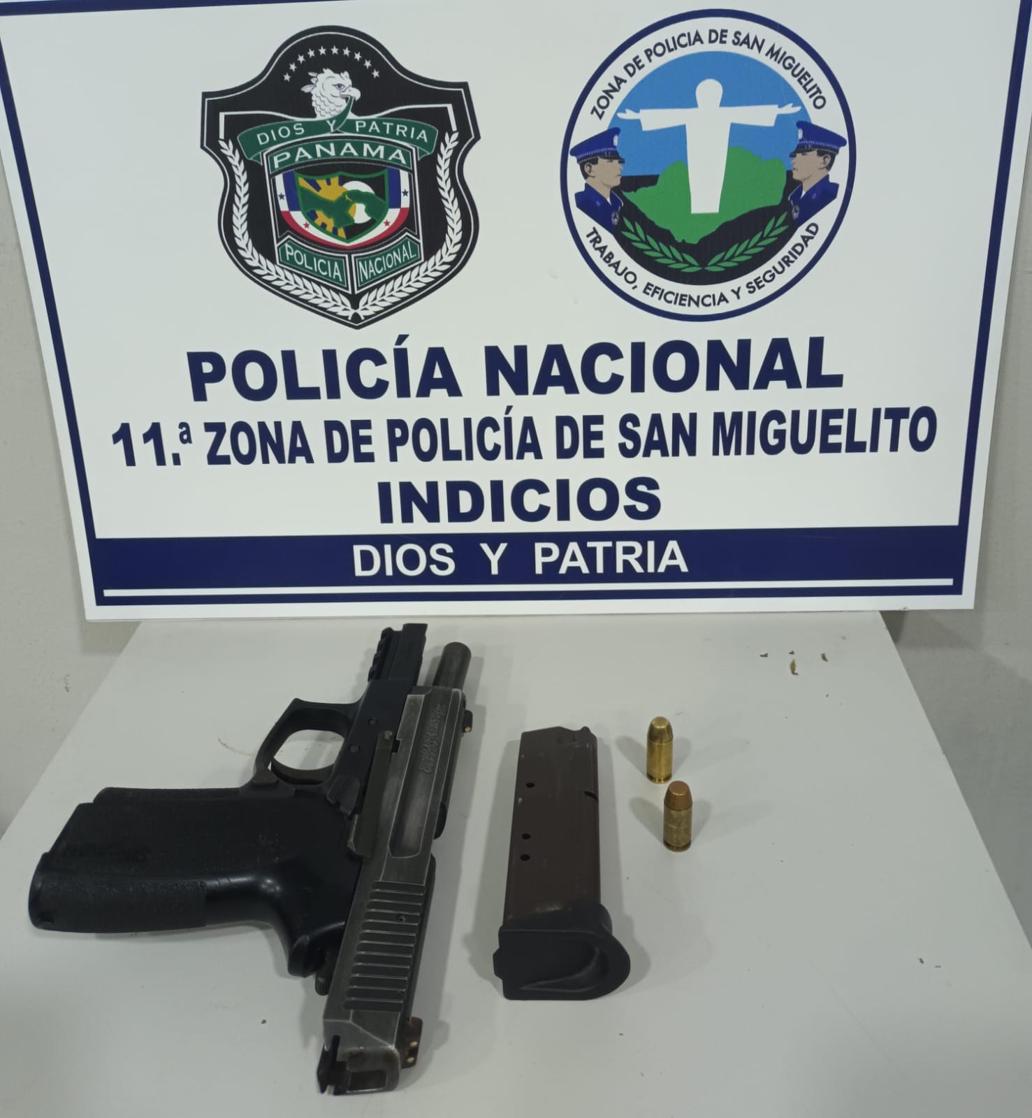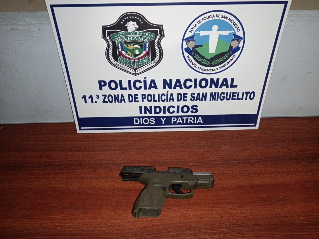 En el sector El Poderoso, corregimiento Belisario Frías, tras verificar sujetos sospechosos, fue aprehendido un menor de 17 años portando un arma de fuego tipo pistola con un proveedor y municiones.