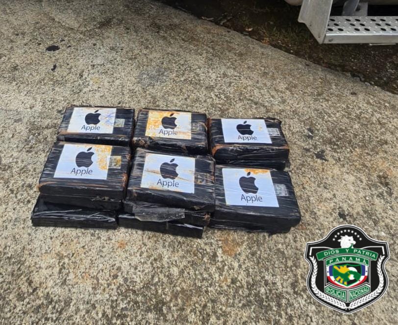 La acción policial se realizó tras un allanamiento a un vehículo articulado conducido por un ciudadano de nacionalidad panameña donde se encontraron los paquetes forrados con cinta adhesiva de color negro, con el logo de una manzana.