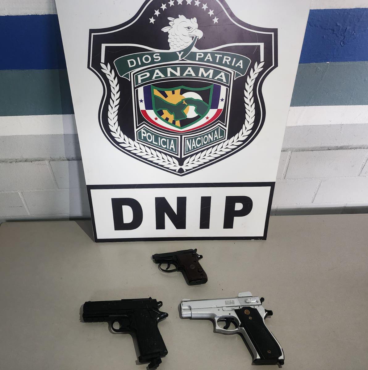 En la diligencia de allanamiento, realizada en el marco del Plan Firmeza, se ubicó un arma de fuego, tipo pistola, calibre 22, sin municiones, además de una réplica de arma de fuego tipo pistola de color gris con negro y otra réplica de arma de fuego tipo pistola de color negro.