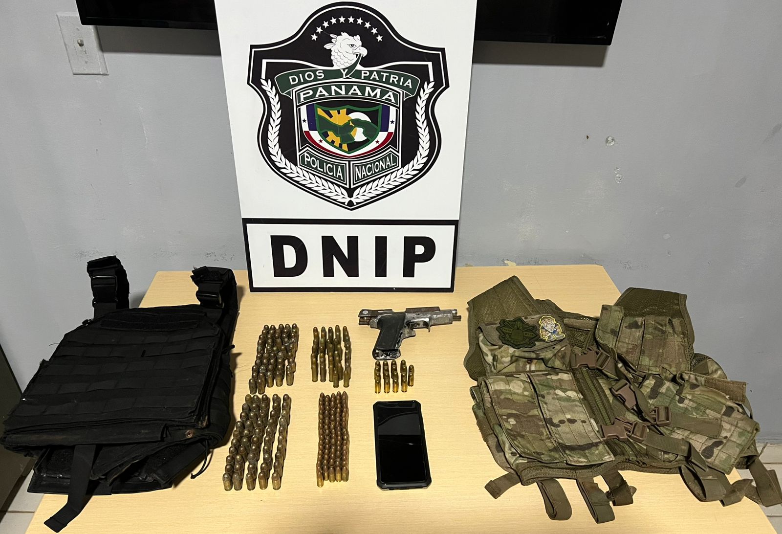En el primer operativo, desarrollado en el sector de Burunga, fue aprehendido un hombre de 28 años de edad, a quien se le decomisó un arma de fuego tipo pistola, municiones de varios calibres, dos chalecos y equipos tecnológicos.