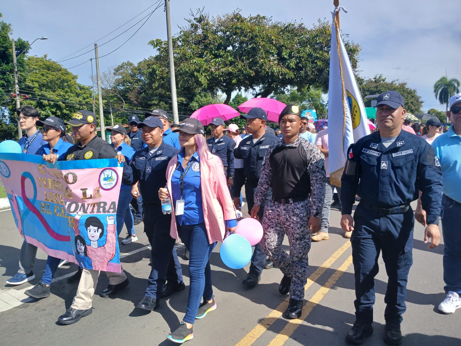 En conmemoración del Mes de la Prevención del Cáncer de Mama y Próstata, unidades policiales participaron en la 1.ª Caminata Interinstitucional “Caminemos por la Vida con Paso Firme”, organizada por la Gobernación de Chiriquí, el Despacho de la Primera Dama y la Junta Técnica Provincial. El evento contó con el acompañamiento de la Banda de Música de la 4.ª Zona Policial y unidades de Tránsito, quienes garantizaron la seguridad durante el recorrido.