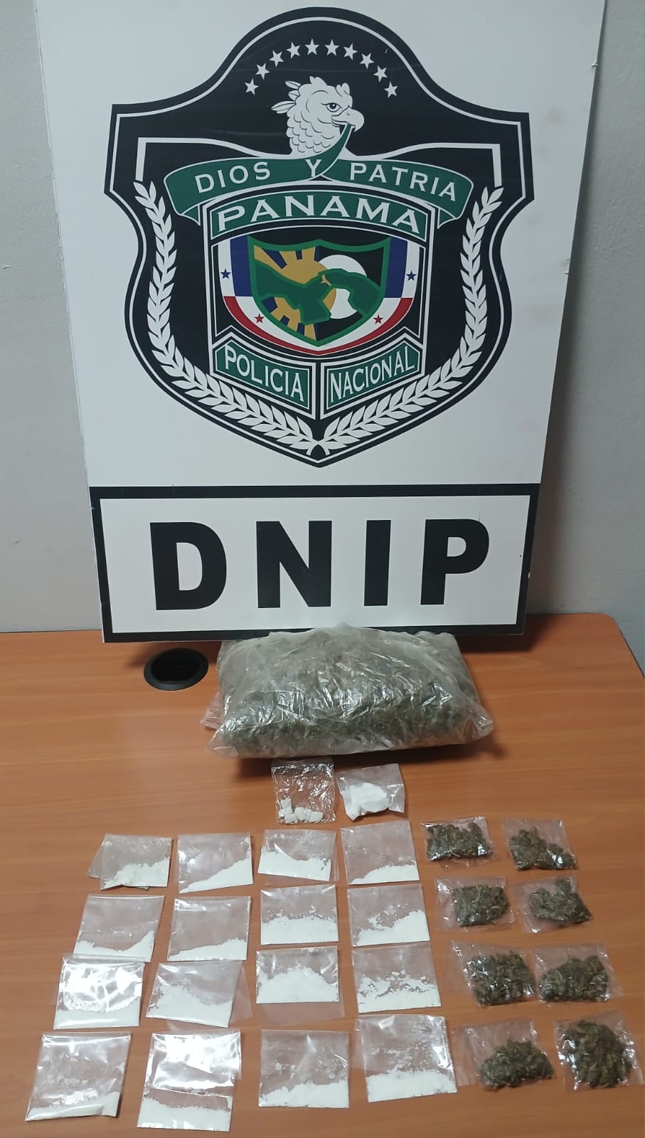 En el sector de San Miguel, edifico El Bloque; uniformados aprehenden a tres ciudadanos de 54, 47, 59 años, dentro de un inmueble donde ubican B/. 1,040.75 en efectivo y monedas de diferentes denominaciones, bolsitas plásticas transparentes con droga, 12 sobrecitos contentivos de cierta cantidad de polvo blanco que se presume sea cocaína y equipos tecnológicos.