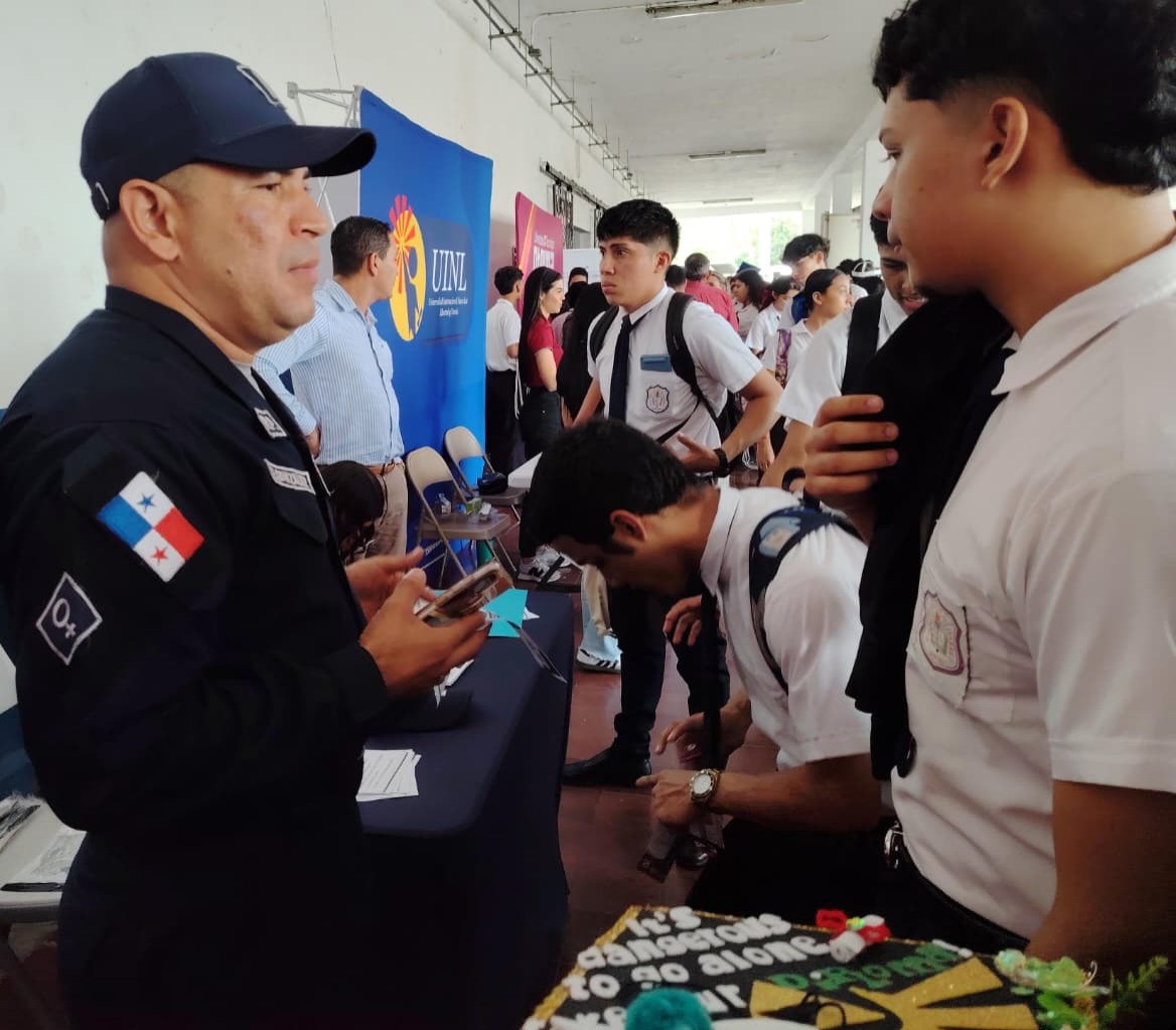En el marco del Programa de Orientación Vocacional y Empleo (POVE), el Departamento de Reclutamiento y Selección de la Policía Nacional participó en una feria vocacional realizada en el Colegio Félix Olivares Contreras, en el distrito de David, provincia de Chiriquí.