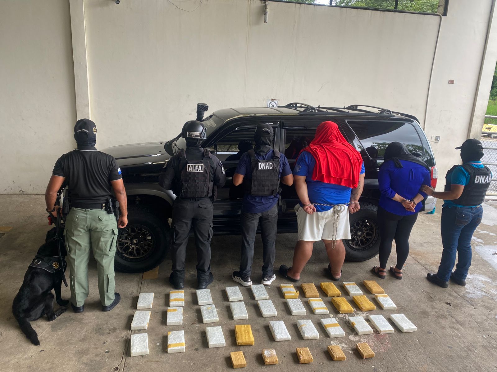 La Policía Nacional decomisó 35 paquetes rectangulares de presunta droga y aprehendió a dos personas: un hombre panameño de 27 años y una mujer costarricense de 28 años, tras la verificación a un vehículo en el Puesto Integral de Guabalá, ubicado en el distrito de Tolé, provincia de Chiriquí. Durante la inspección al automóvil tipo camioneta, también se ubicaron B/.4,919.00 en efectivo, ₡800,000 colones costarricenses, además de equipo tecnológico. Tanto los indicios como los aprehendidos fueron puestos a órdenes de las autoridades competentes para los trámites legales correspondientes. La Policía Nacional reitera su compromiso con el combate frontal al narcotráfico y continuará ejecutando acciones estratégicas para garantizar la seguridad en los puntos de control del país. |