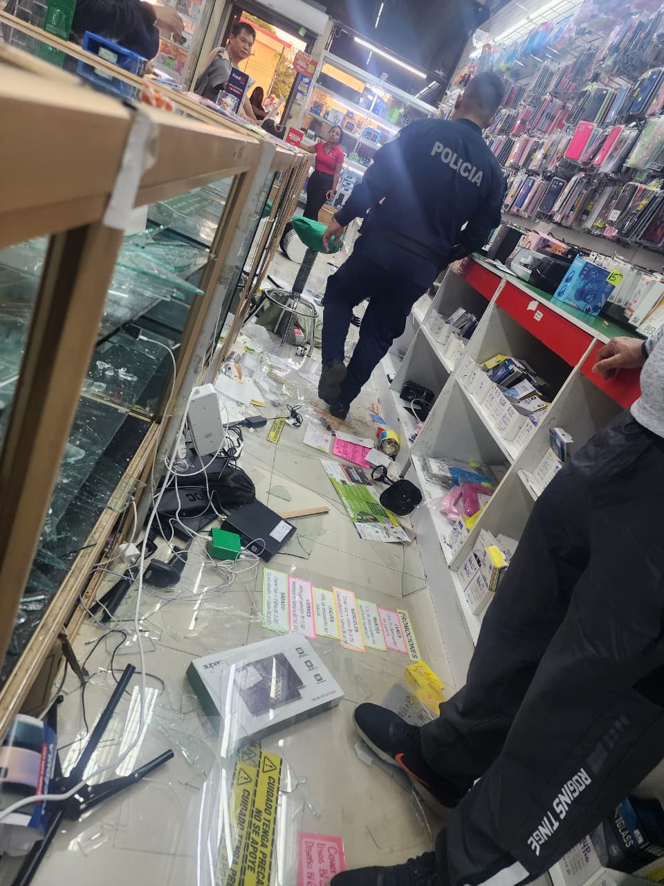 Los individuos, tres de ellos menores de edad, entraron de manera abrupta al establecimiento, donde amenazaron a los colaboradores del local dedicado a dedicado a la reparación y venta de celulares y accesorios, momento en que las unidades policiales, frustran el hecho delictivo, procediendo con la captura inmediata de todos los involucrados.