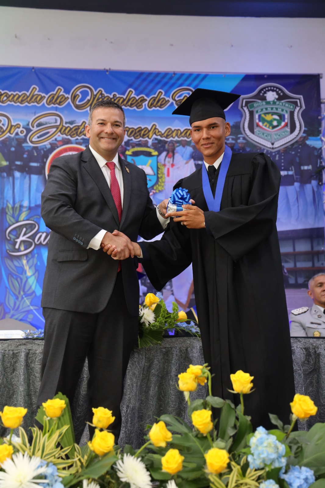 La Policía Nacional, a través de la Escuela de Oficiales de Policía “Doctor Justo Arosemena”, celebró el egreso de la Vigésima Quinta Promoción “Coronel Tomás Armuelles Pérez”, conformada por 37 nuevos alféreces, siendo 5 damas y 32 caballeros, quienes culminaron exitosamente su formación académica y profesional, obteniendo el título de Licenciados en Administración Policial.