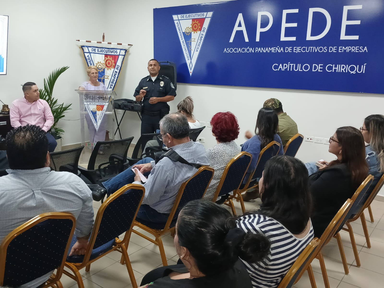El jefe de la 4.ª Zona de Policía de Chiriquí, Subcomisionado Luis Hernández, en días pasado sostuvo una reunión con representantes de la Asociación Panameña de Ejecutivos de Empresas (APEDE), capítulo de Chiriquí, con el objetivo de compartir las estrategias que se están implementando para reforzar la seguridad en la provincia.