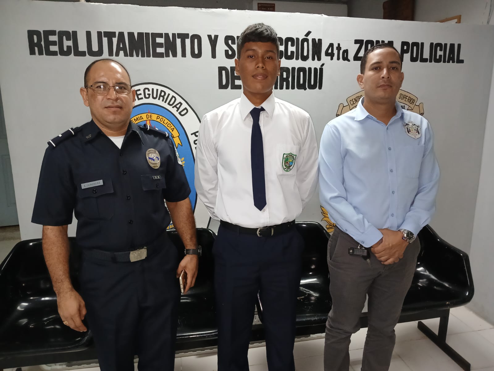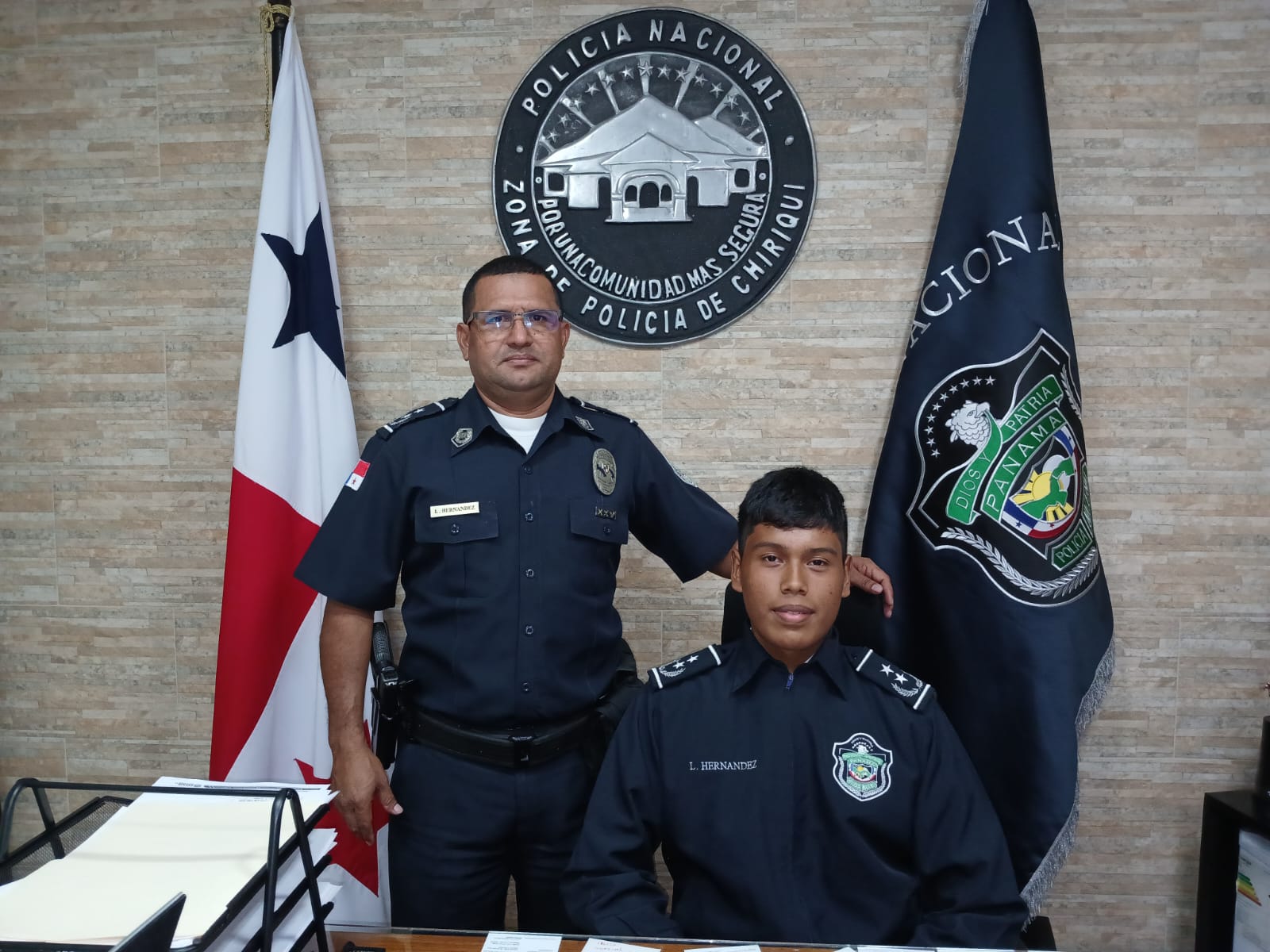 El jefe de la 4.ª Zona de Policía de Chiriquí, Subcomisionado Luis Hernández, recibió en su despacho al joven Romy Echeverría, estudiante de 5.º año del Colegio I.P.T. Abel Tapiero Miranda, quien obtuvo un destacado promedio de 4.8.