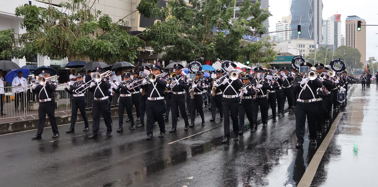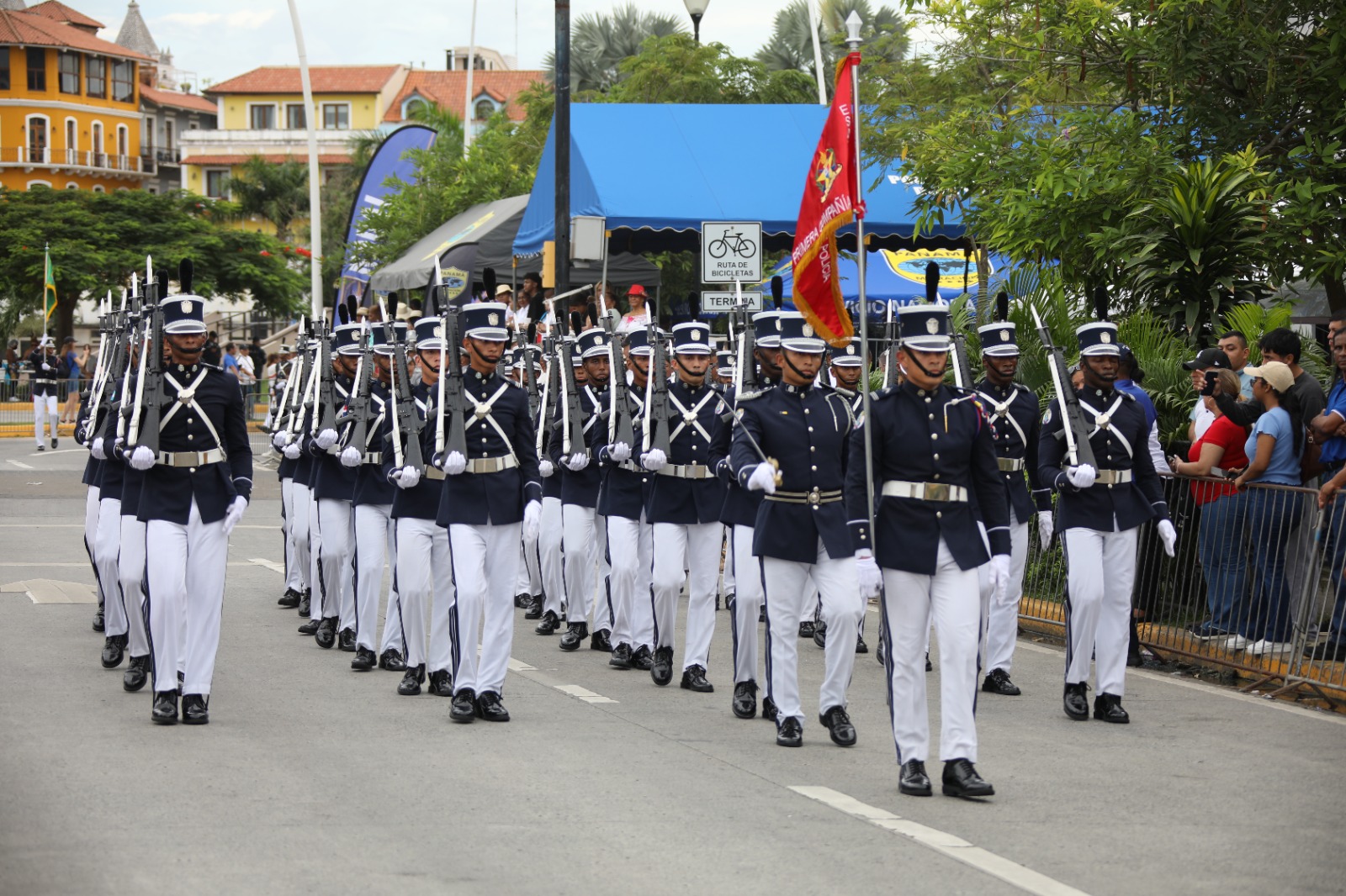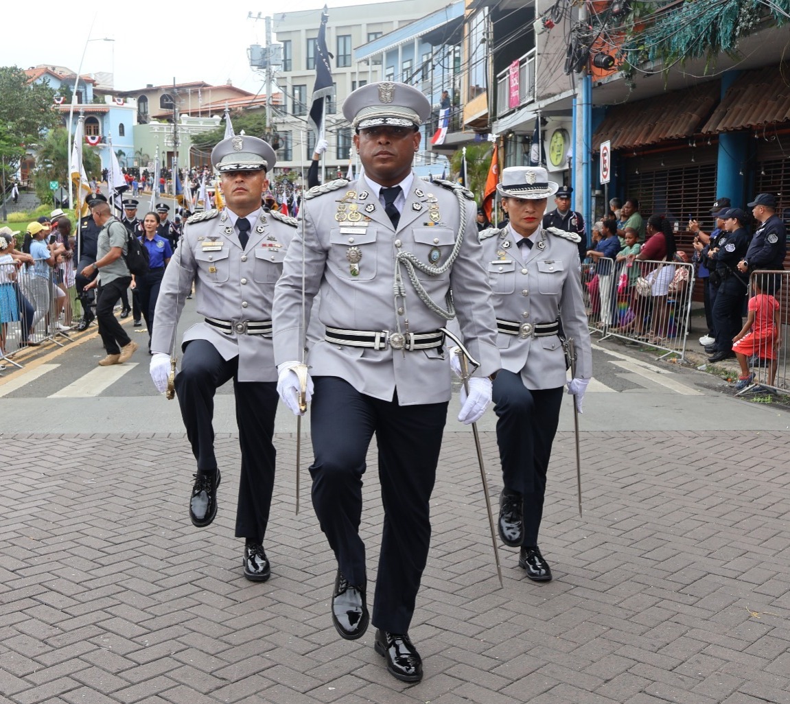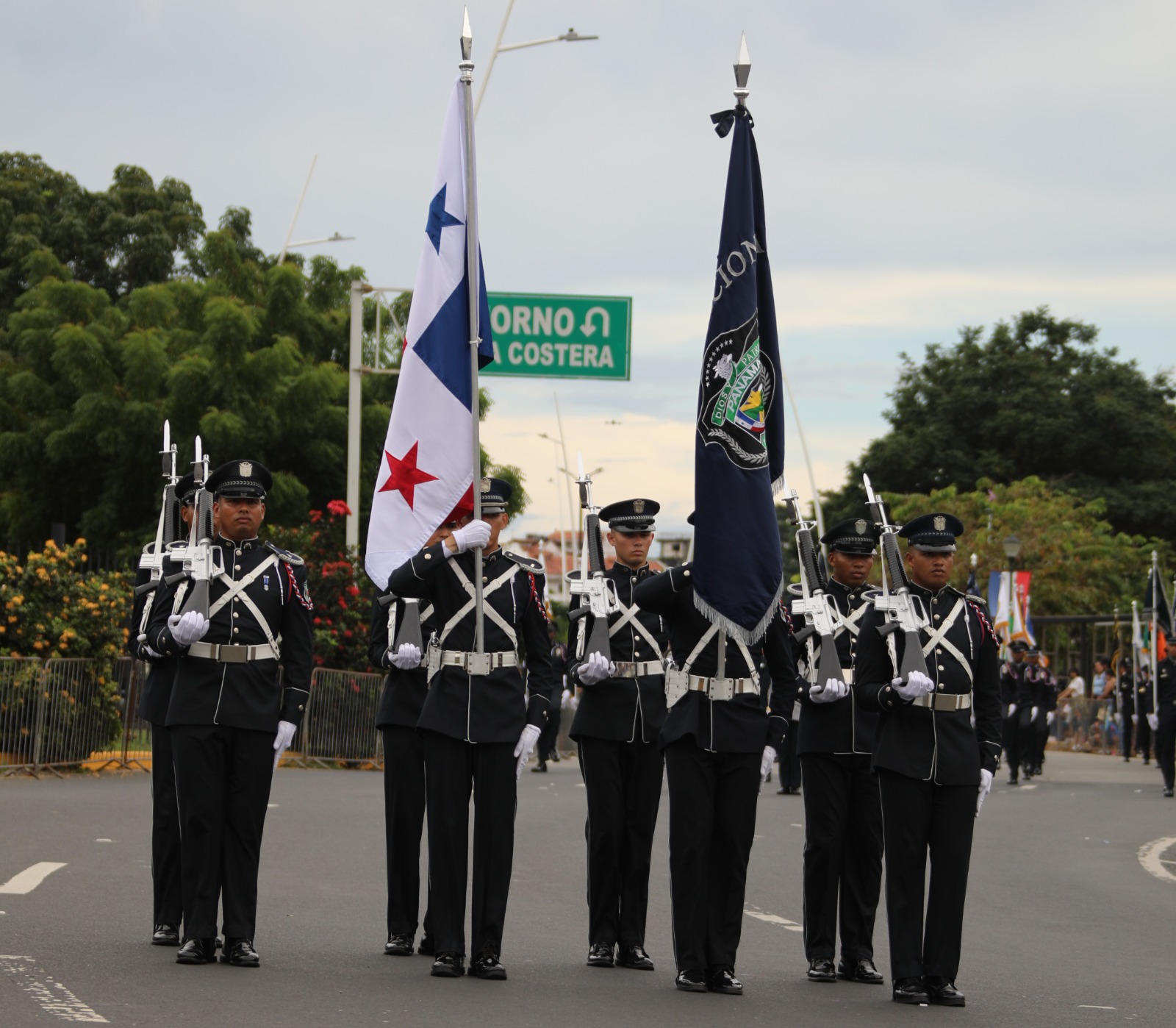 La delegación, integrada por la Dirección Nacional de Operaciones de Tránsito, la Banda de Música, la Plana Mayor, la Escolta de Banderas, la Delegación de Banderines, el Pelotón Femenino, el Servicio Policial Ambiental, Rural y Turístico, la Unidad de Fuerza Urbana de Rápida Intervención, la Unidad de Control de Multitudes, la Dirección Nacional de Fuerzas Especiales, la Escuela de Oficiales de Policía “Doctor Justo Arosemena” y el Servicio Policial Motorizado, desfiló con gallardía en honor a la Patria.
