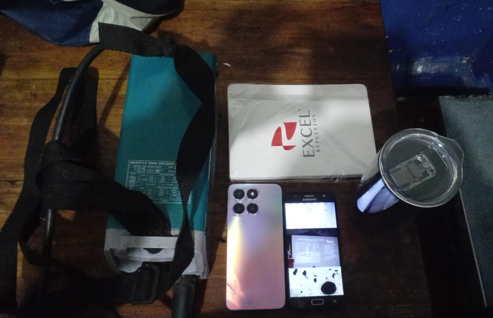 El individuo fue observado en actitud inusual y nerviosa por las unidades policiales, quienes procedieron a realizarle una verificación, encontrándole dos celulares, una máquina de soldar y un vaso térmico, sin que pudiera justificar la procedencia de los mismos.