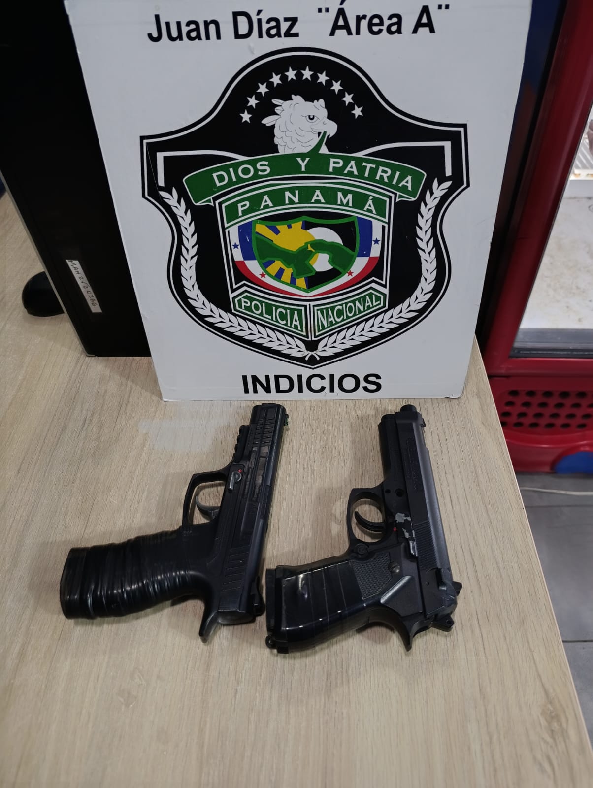 Se procedió a revisar el vehículo donde se ubicaron dos réplicas de armas de fuego. El caso pasó a órdenes de las autoridades judiciales correspondientes.