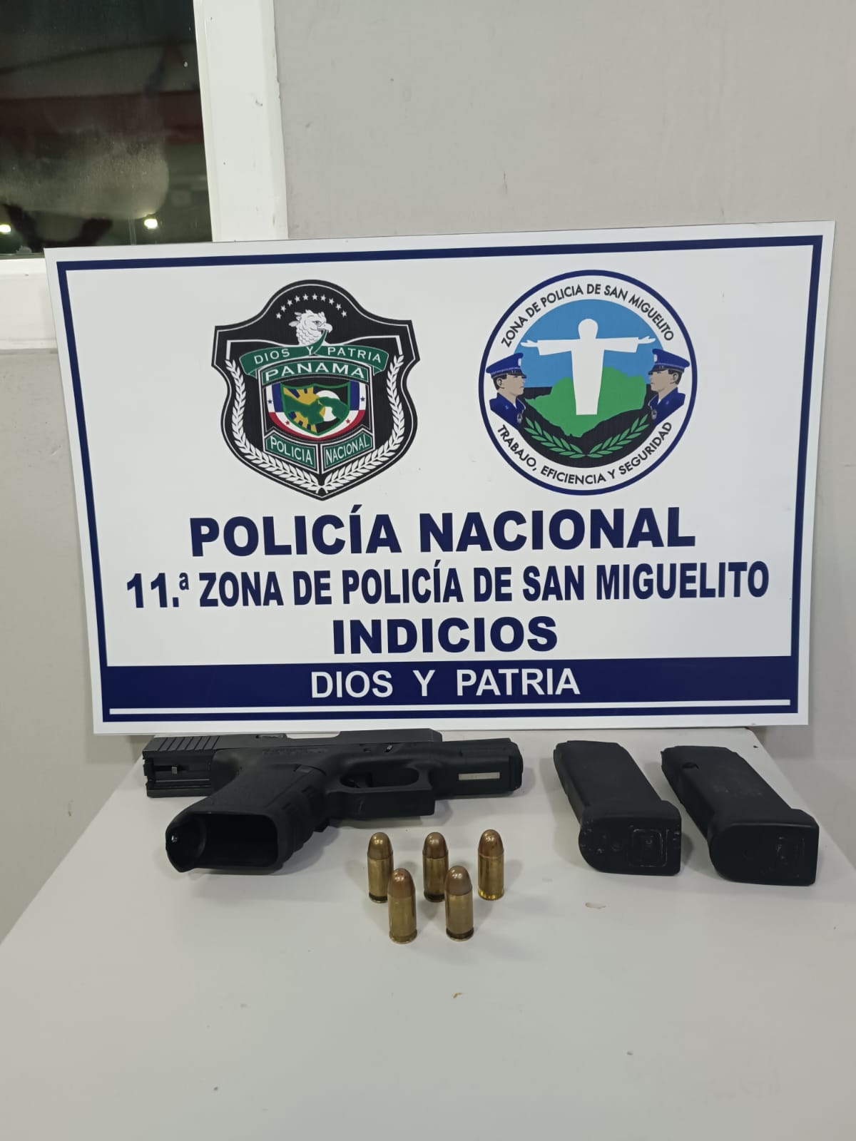 En el marco del Plan Firmeza, unidades de la Policía Nacional mediante recorrido preventivo y operativo, aprehenden a una persona de 23 años y le decomisa un arma de fuego tipo pistola con dos proveedores y municiones en el sector de La Guaracha, corregimiento de Belisario Frías.