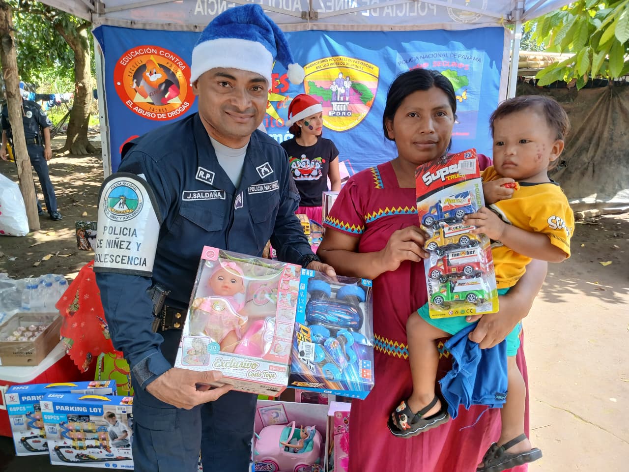 Con alegría, música, juegos y dulces, unidades del Servicio Policial de Niñez y Adolescencia de la 4.ª Zona de Policía de Chiriquí regalaron una mañana inolvidable a los niños de la comunidad de La Berlina, corregimiento de Querevaló, distrito de Alanje, quienes disfrutaron de una emotiva celebración navideña.