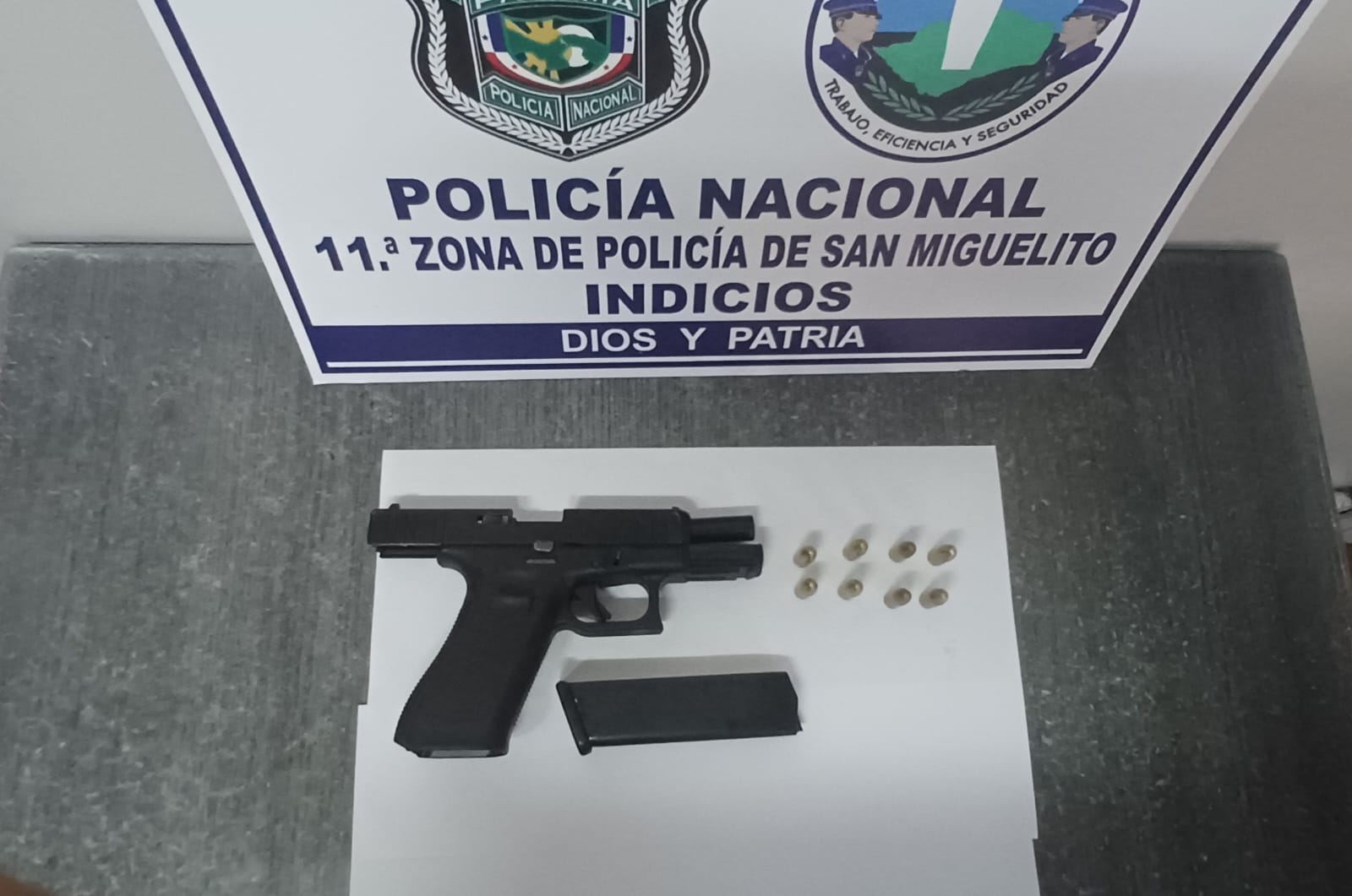 A través del Operativo Fin de Año Seguro 2025, unidades de la Policía Nacional mediante recorrido preventivo y operativo, aprehenden a una persona y le decomisa un arma de fuego tipo pistola con su respectivo proveedor y municiones en el sector del Puente Rojo, corregimiento de Belisario Porras, distrito de San Miguelito