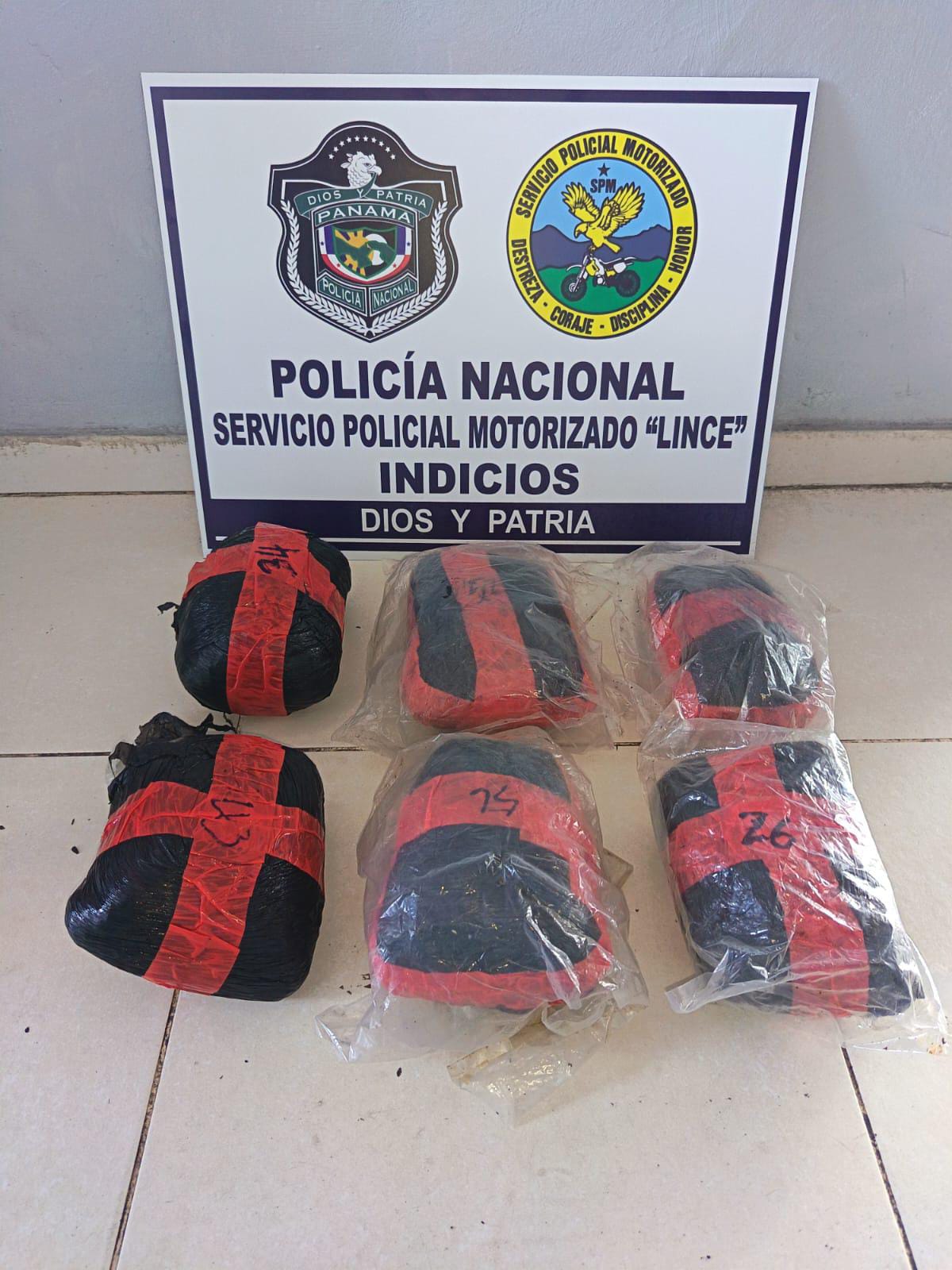 Mediante recorrido preventivo de la Policía Motorizada, en la calle 31 del sector de Santa Rita de Cabra en Pacora, se logró ubicar a dos sujetos quienes, al notar a la distancia, la presencia policial, arrojan un paquete y se dio a la fuga a través de un herbazal.