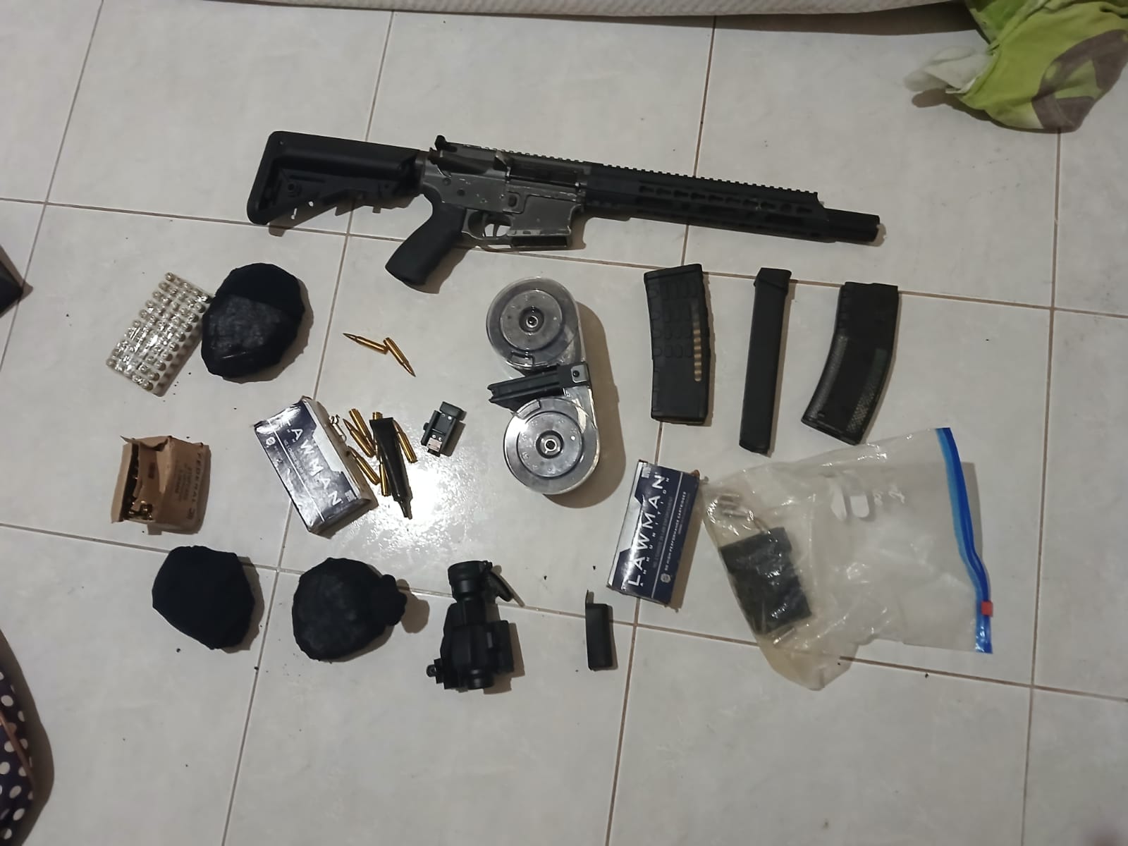 Entre los indicios decomisados hay un fusil R15, proveedores de esta misma arma y otras, así como municiones varias.