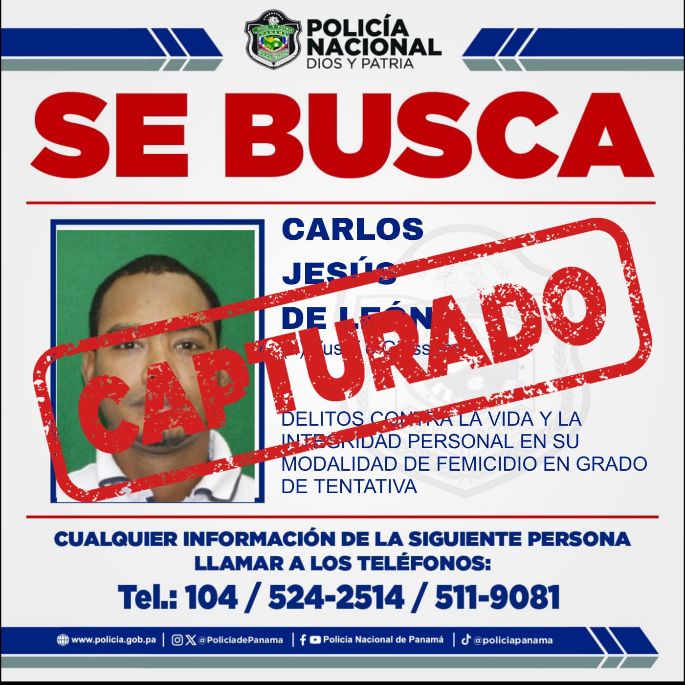 Continuando con los resultados de cooperación internacional, en la ciudad de Quibdó, Chocó, en la hermana república de Colombia, se logró la aprehensión del ciudadano panameño Carlos Jesús de León, quien es requerido con Notificación Roja de Interpol.