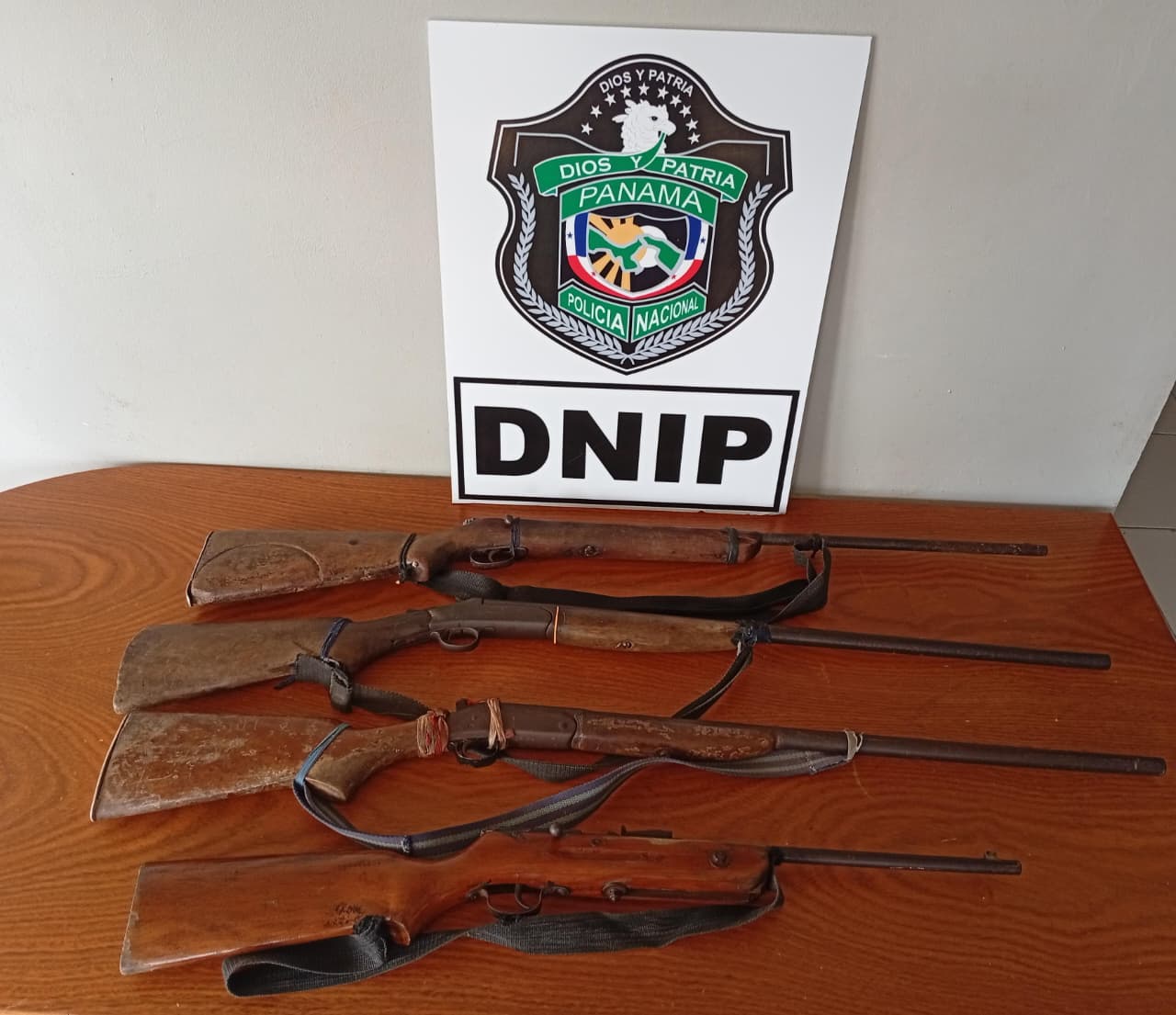 Tras una acción operativa, unidades policiales lograron la aprehensión de un ciudadano tras decomisarle cuatro armas de fuego sin los permisos correspondientes, en el corregimiento de Soloy, Comarca Ngäbe Buglé.