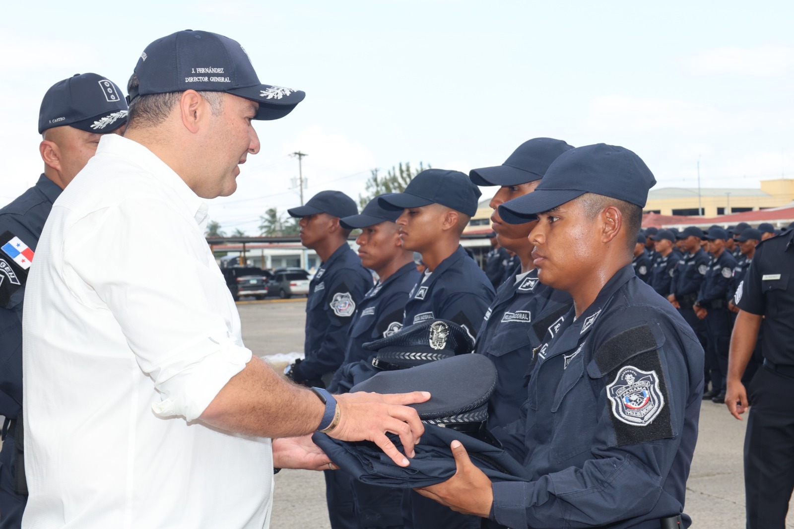 El Director General de la Policía Nacional Jaime Fernández, entregó uniformes a los 727 nuevos agentes, integrantes de la Promoción 102, recién egresados del Instituto Superior Policial.