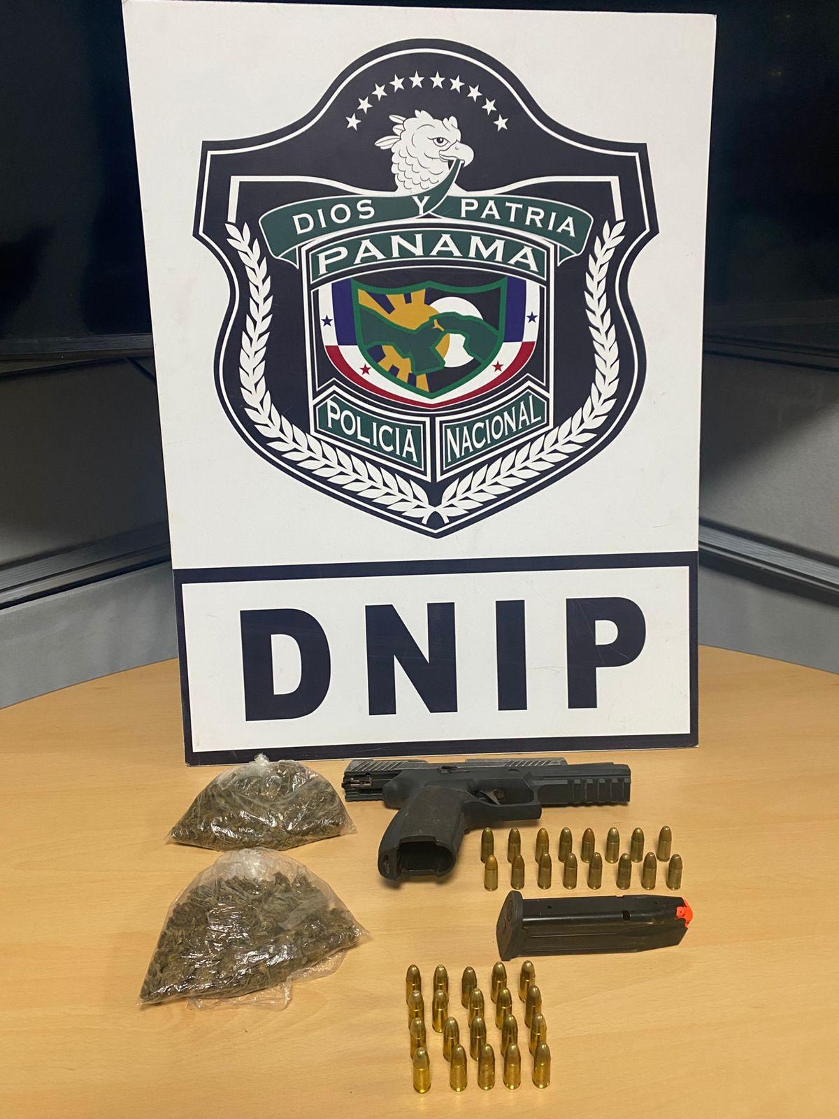 Mediante diligencia de allanamiento y registro en el Corregimiento de las Lomas, provincia de Chiriquí, junto al Ministerio Público, se aprehendió, a dos personas tras decomisarles presunta sustancia ilícita. De igual manera, en este mismo sector en un lote baldío, se ubicó un arma de fuego tipo pistola, un proveedor y municiones. Por otro lado, en el sector de las Paredes, corregimiento de la 24 de Diciembre, se ubicó en un lote baldío, un arma de fuego tipo pistola y varias municiones. |