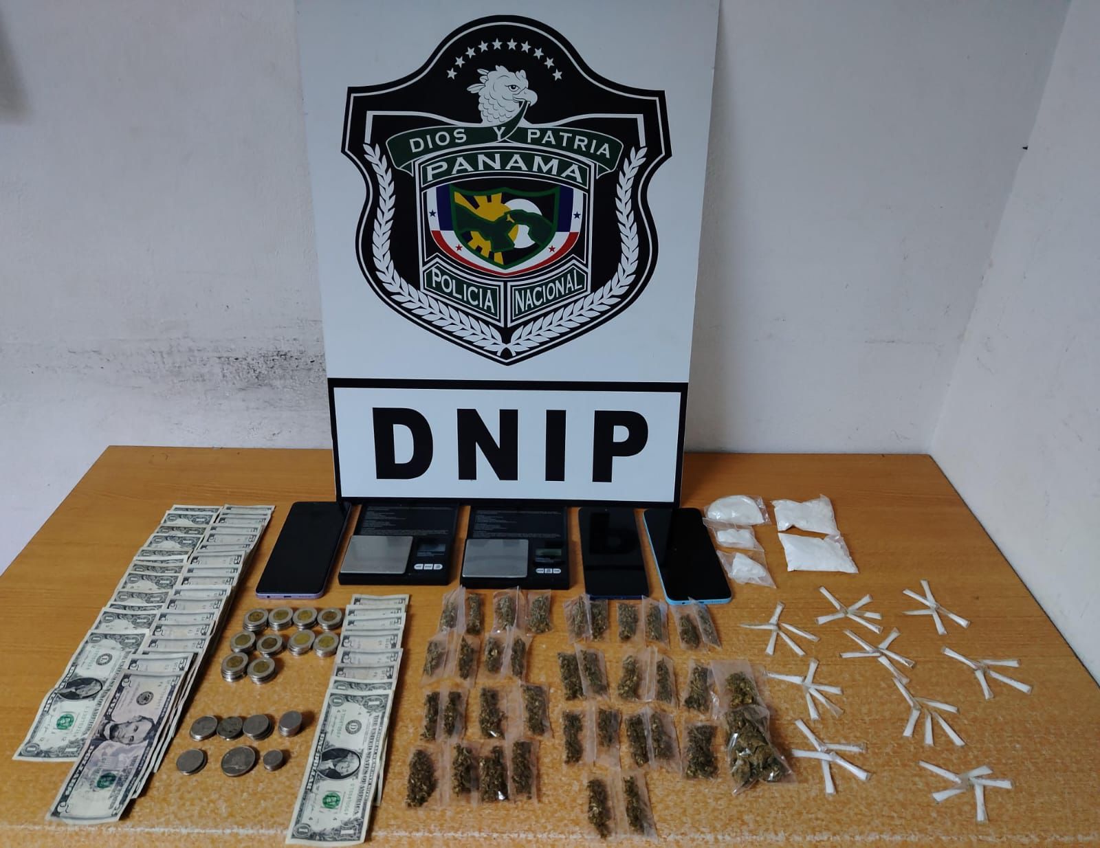En una primera acción, desarrollada en este sector, fueron aprehendidos tres sujetos tras el decomiso de varios carrizos y envoltorios con presunta sustancia ilícita. Durante el operativo también se incautaron pesas digitales, equipos tecnológicos y dinero en efectivo, presuntamente vinculados a actividades ilícitas.