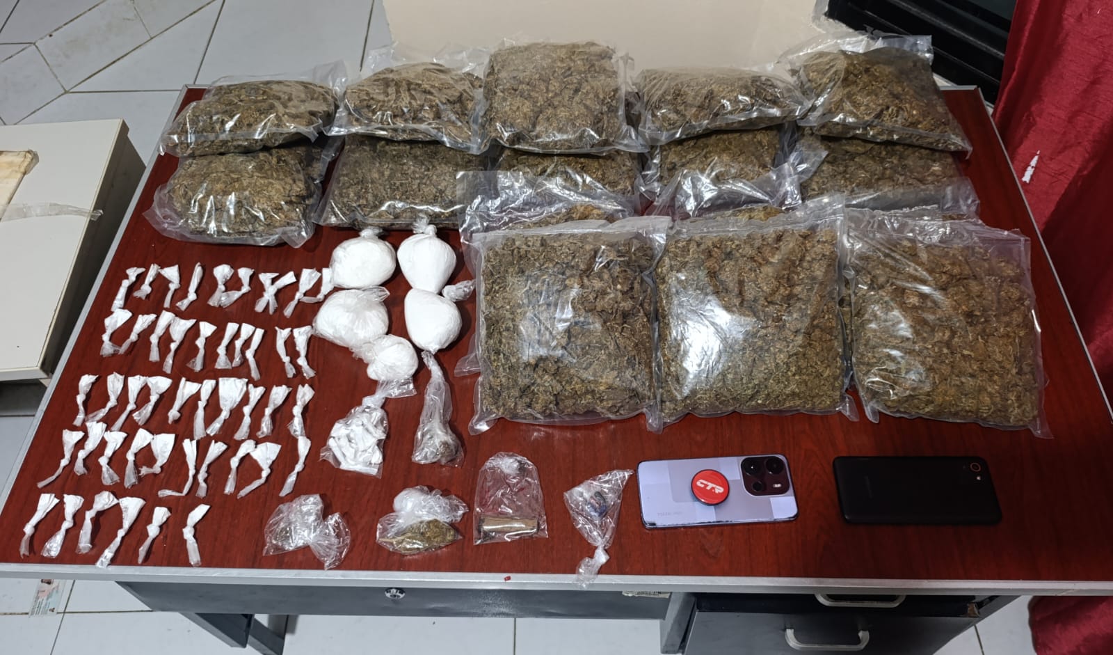 Durante el operativo, las unidades decomisaron un vehículo tipo sedán, 16 bolsas de marihuana de aproximadamente una libra cada una, así como una cantidad considerable de bolsas de menudeo con presunta sustancia ilícita (cocaína), cuatro pastillas que se presume contienen droga, además de equipos tecnológicos.