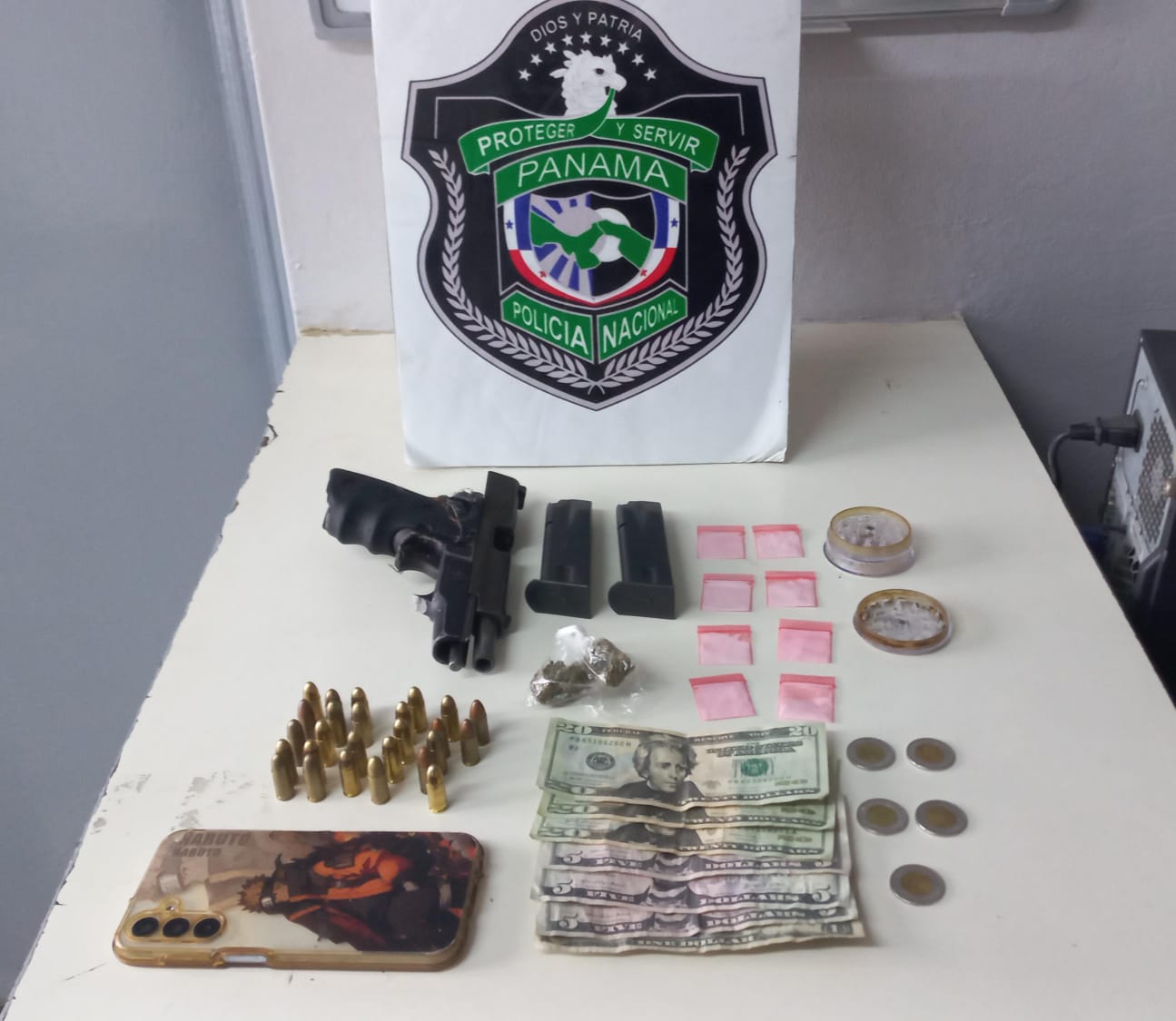 POLICÍA APREHENDE A DOS PERSONAS Y DECOMISA ARMA Y PRESUNTA DROGA EN LA RIVIERA
