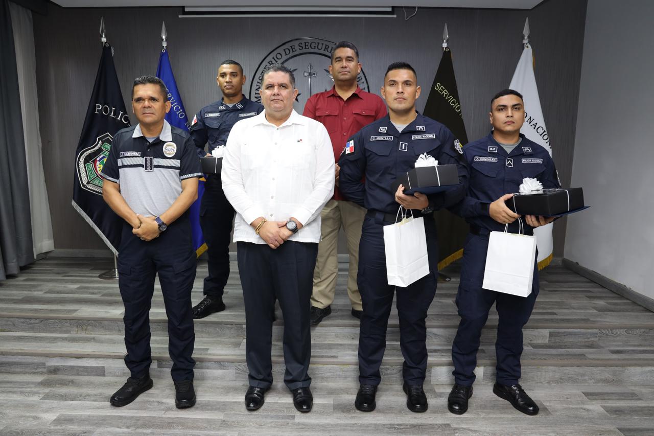 TRES POLICÍAS QUE RESCATARON A UNA FAMILIA POR DESLIZAMIENTO SON CONDECORADOS POR EL MINISTRO DE SEGURIDAD
