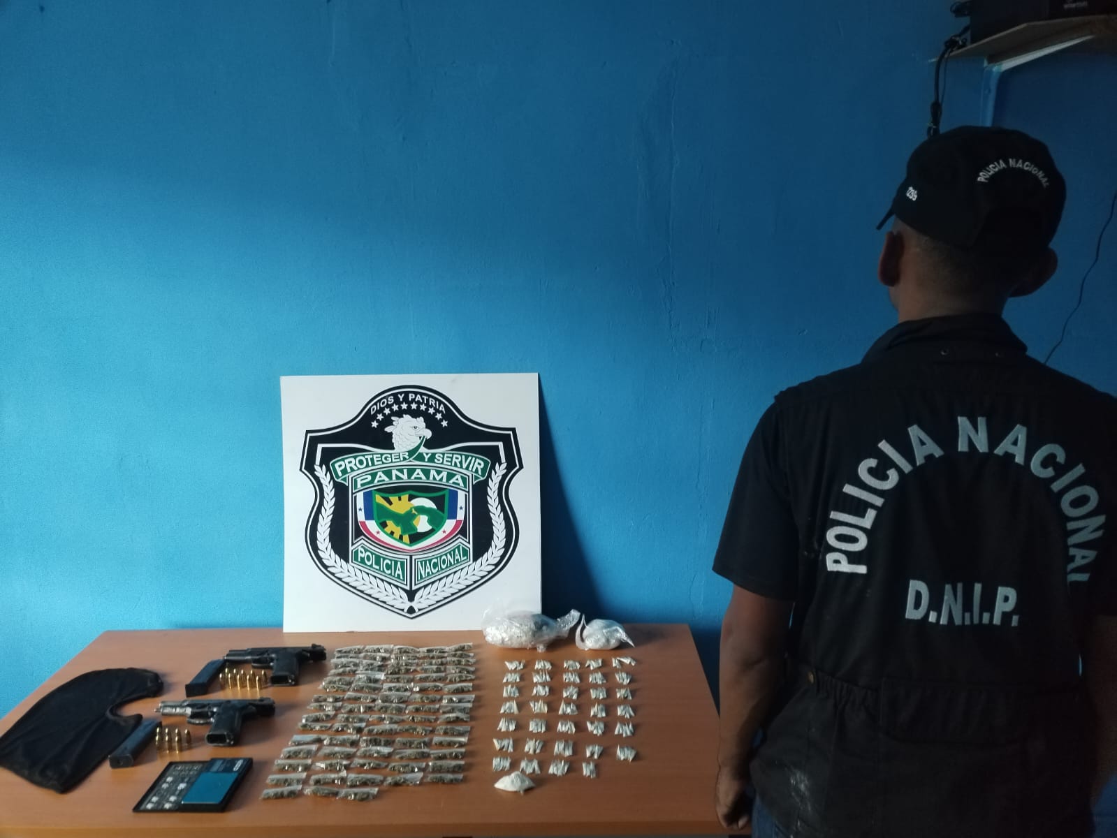 POLICÍA UBICA UN ARMA DE FUEGO Y PRESUNTA SUSTANCIA ILÍCITA EN SAN MIGUELITO.