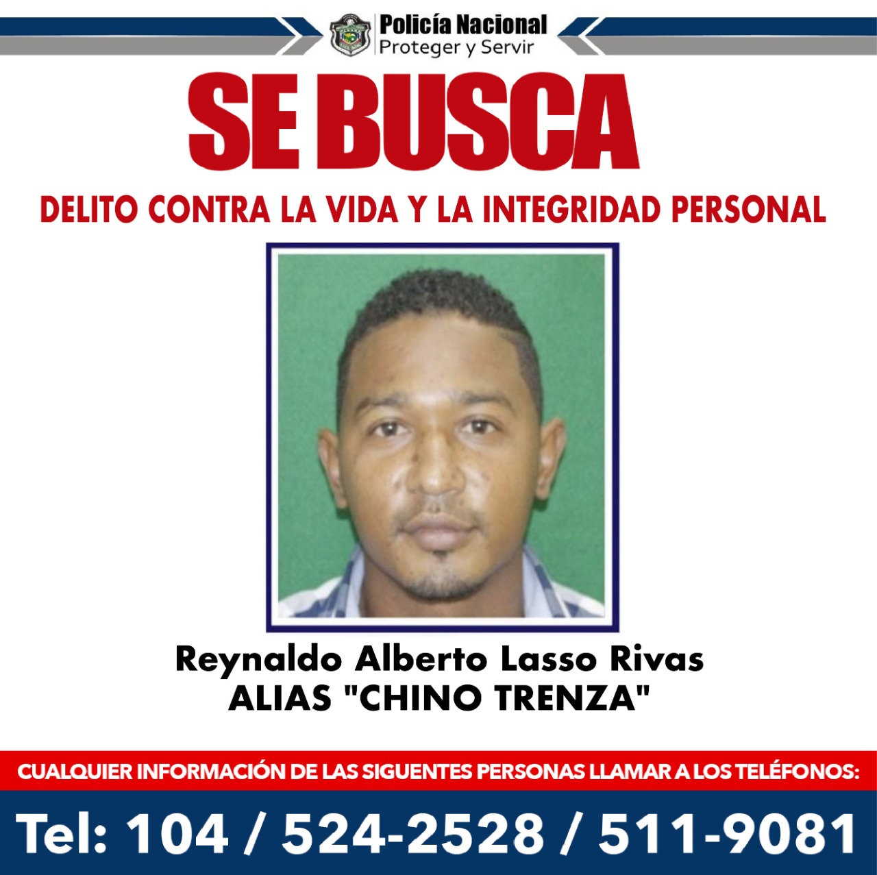 Lunes, 26 de septiembre de 2022 a las 8:00 pm La Policía Nacional a través de las Operaciones de Investigación Judicial buscan a Reynaldo Alberto Lasso Rivas, alías, "Chino Trenza".