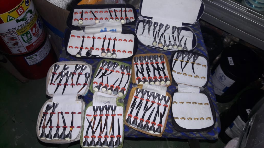 RECUPERAN ESPUELAS PARA GALLOS CONFECCIONADAS CON TORTUGA DE CAREY EN SANTA ANA