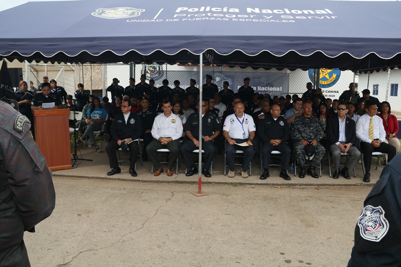 El Subdirector General de la Policía Nacional, Jacinto Gómez dio la bienvenida a representantes de cinco países, quienes participan en el Primer Congreso Internacional de Especialidades Caninas Panamá 2018, llevado a cabo en la Unidad Canina, ubicado en el corregimiento de Tocumen. “La unidad canina es el mejor aliado de las instituciones de seguridad, durante muchos años los perros han sido uno de los factores importantes en la detención de drogas, principalmente en nuestro país y sé que este congreso va a ser de mucho beneficio para Panamá” destacó el Subdirector. Se trata de un evento que cuenta con la participación de representantes de México: la Asociación Internacional de Formación y Capacitación de Adiestradores de Perros (AIFCA-K9), Policía Municipal de HUNUCMA; la Policía Seguridad Aeroportuaria de Argentina, el Centro Regional de Adiestramiento Canino de la Policía de Ecuador, la Benemérita Cruz Roja K-Zar de Costa Rica y la Unidad Canina del Organismo de Investigación Judicial. Por su parte el Jefe de la Unidad Canina de la Policía Nacional, Mayor Mario Chan Durán destacó la importancia de este congreso, que busca aproximar técnicas, estratégicas, planes y metodologías de la región Latinoamericana en el uso de perros auxiliares de policías y también para servicios humanitarios. En esta actividad donde los canes realizarán demostraciones con sus instructores, se estarán poniendo en práctica habilidades y destrezas como: detención de sustancias ilícitas, intervención, patrullaje y protección, búsqueda y rescate, terapia asistida, primeros auxilios caninos y bienestar animal. A la inauguración asistieron representantes de los estamentos de seguridad del estado como: Servicio Nacional de Fronteras,( SENAFRONT) Servicio Nacional Aeronaval (SENAN) y el Servicio de Protección Institucional (SPI), representantes de la Fundación Colitas, Ministerio de Desarrollo Agropecuario e invitados especiales.