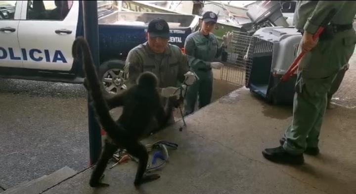 POLICÍA AMBIENTAL, RESCATA UN MONO ARAÑA QUE TENÍAN ENCADENADO EN CAPIRA