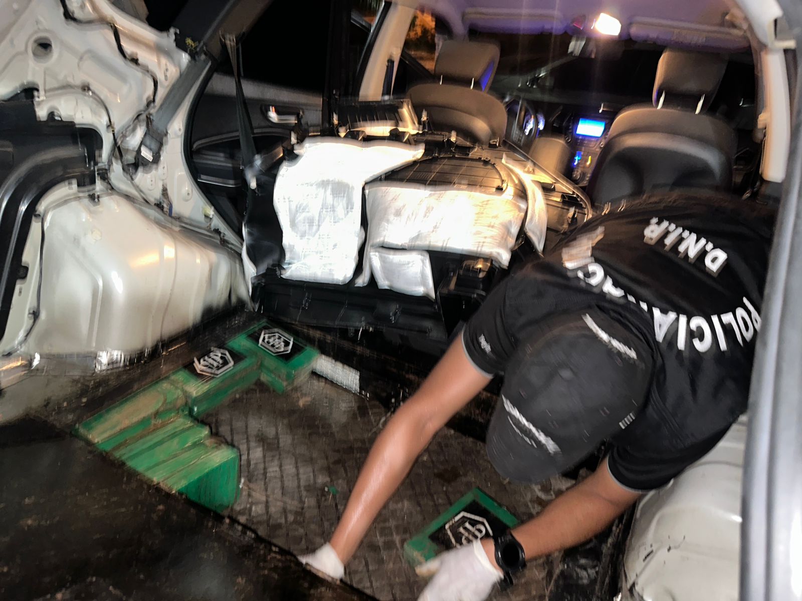 Durante la acción policial en el sector de Monte Limar, uniformados decomisaron 130 paquetes de presunta droga dentro de un vehículo tipo camioneta con doble fondo, además se decomisó un arma de fuego con 15 municiones, por este caso hay una persona aprehendida.
