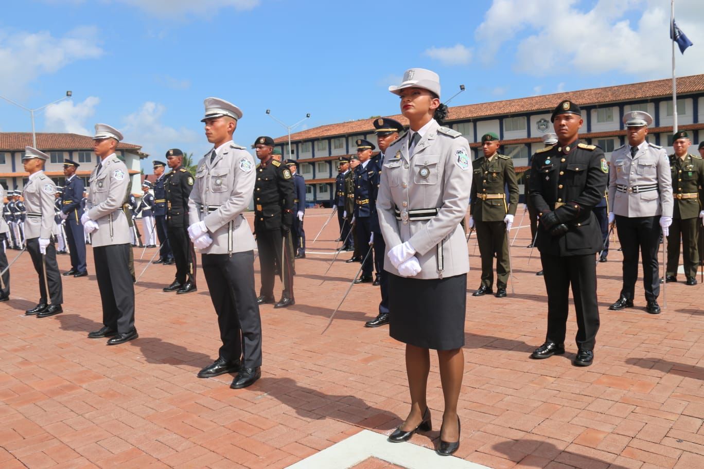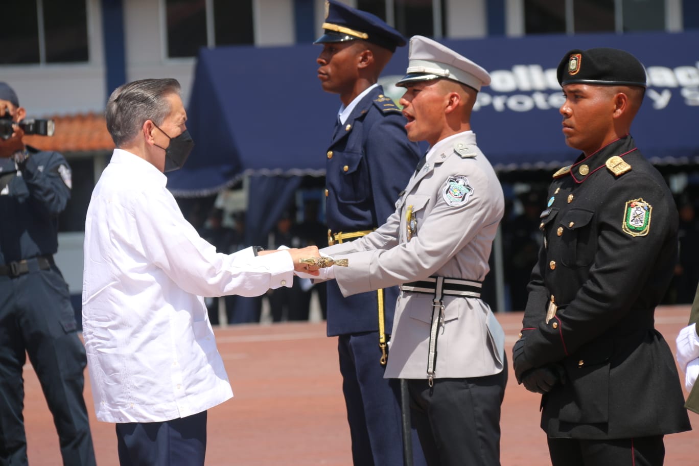 Un total de 55 alféreces, son los nuevos oficiales que recibe el país, al ser juramentados por el Excelentísimo Señor Presidente de la República, Laurentino Cortizo Cohen, durante la ceremonia de graduación realizada en la Plaza de Armas de la Escuela de Oficiales de Policía (ESOPOL), Doctor Justo Arosemena. El Excelentísimo Señor Presidente de la República de Panamá, Laurentino Cortizo Cohen, dijo que los nuevos oficiales con el rango de Subteniente se han preparado física y mentalmente para servir a la Patría, con la misión de garantizar la seguridad y la paz social en el Territorio Nacional, que gran honor. Hoy los 55 oficiales empiezan con valentía, disciplina, responsabilidad honestidad y determinación para enfrentar la dura lucha contra el crimen, la delincuencia y las adversidades que ponen en riesgo la vida y la seguridad de los ciudadanos y sus bienes. Se trata de la XXIII Promoción General José Domingo Espinar Aranda, quienes portan sus sables que representan don de mando, tras culminar los 4 años de estudio, en los que lograron también sus títulos en la licenciatura de Administración Policial, otorgada por la Universidad de Panamá. Es importante destacar que jóvenes de los países hermanos de Costa Rica, Perú, República Dominicana, El Salvador, Honduras, se han formado como Oficiales de Policía en la ESOPOL. De esta promoción, 8 estudiantes fueron formados en la ESOPOL. Adicional, 47 oficiales panameños egresados de escuelas del extranjero. En el acto de juramentación, estuvieron presentes el Ministro de Seguridad Pública, Juan Manuel Pino, el Director General de la Policía Nacional, John Dornheim, el Subcomisionado Francisco Castro, Jefe de la Escuela de Oficiales, miembros de directorio de los Estamentos de Seguridad, agregados militares, navales y policiales e invitados especiales. Los primeros puestos fueron alcanzados por los subtenientes Lucas Pimentel, Rosa Arrocha y José Ulloa, quienes ocuparon el Primer Puesto, Segundo y Tercer Puesto respectivamente; recibieron también medalla Doctor Justo Arosemena. Estos jóvenes, asumen con orgullo el compromiso de servir con Vocación e Integridad, cimentada su formación con el lema de su Alma Mater: Bastión de Valores. |