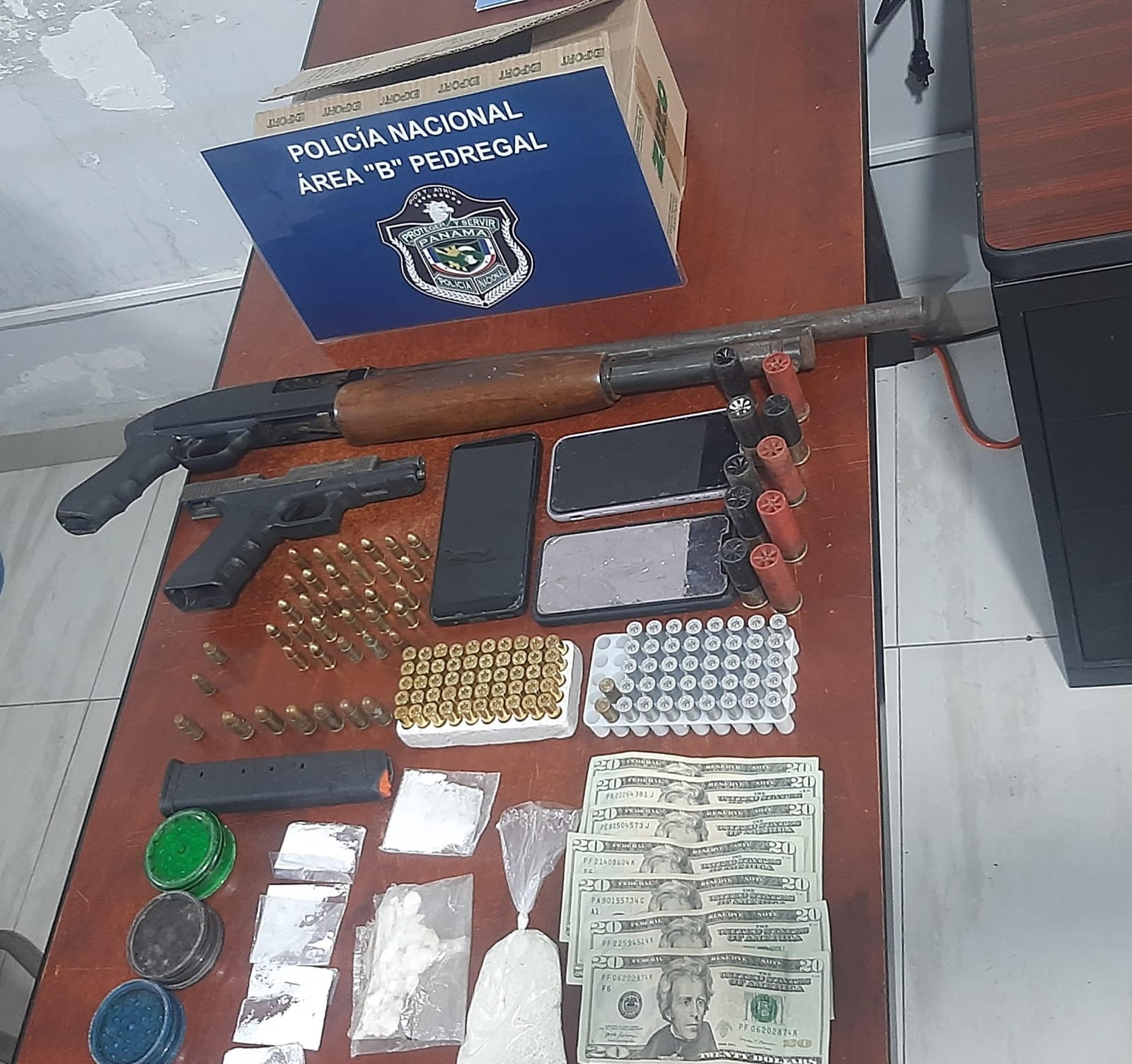 Se coordinaron 51 allanamientos, se incautaron 16 armas de fuego con 448 municiones, 6 paquetes de droga, B/.8, 085.00, se recuperaron 3 vehículos.