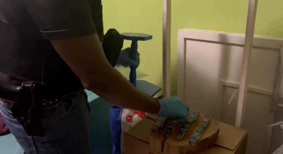 Entre los indicios recabados se encuentran ocho ampollas líquidas con presunta droga, además de un envoltorio contentivo de polvo blanco que se presume sea droga cocaína, además de un triturador con residuo de hierba seca, dos pesas digitales, así como dos celulares y material de embalaje.