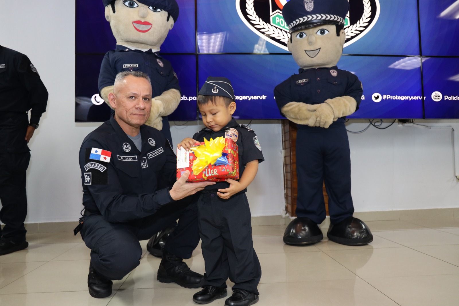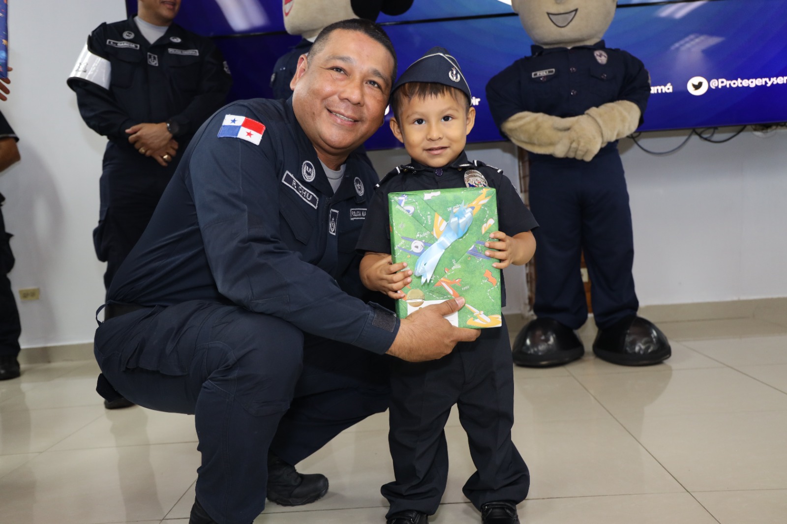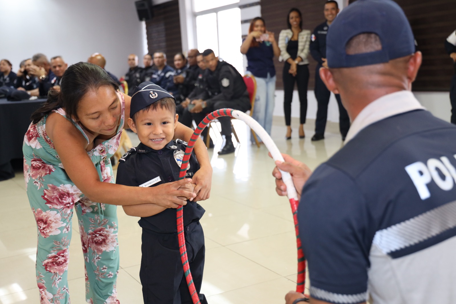 “En nombre de todos los que integran esta noble institución, es un honor y privilegio, tenerte hoy aquí y cumplirte el sueño, Lucas de ser Policía, verte con el uniforme y con esa sonrisa es nuestra recompensa, sostuvo el Comisionado Luis García, Inspector General de la Policía Nacional en medio de la actividad.