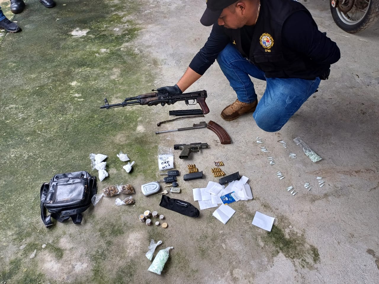 La Policía Nacional y el Ministerio Público, desarrollan diligencias de allanamientos en el sector de Felipillo en el corregimiento de la 24 de Diciembre, decomisando dos armas de fuego, una de estas un fusil. La acción surge tras investigación por el delito Contra el Patrimonio Económico en la modalidad de Robo Agravado, donde se vincula a uno de los aprehendidos en la residencia. Durante la diligencia se ubican partes de un fusil, un arma de fuego, proveedores, municiones, pesa digital, varios paquetes de drogas, llaves de vehículos y otros indicios. En una intensa búsqueda, se decomisa el fusil AK-47 sobre el techo de la casa, el cual posiblemente fue lanzado para intentar evadir la justicia. Entre los aprehendidos figura una mujer y un hombre, este último mantiene 2 oficios por delitos de Robo Agravado, por lo que serán remitidos para los trámites correspondientes a órdenes de las autoridades judiciales. |