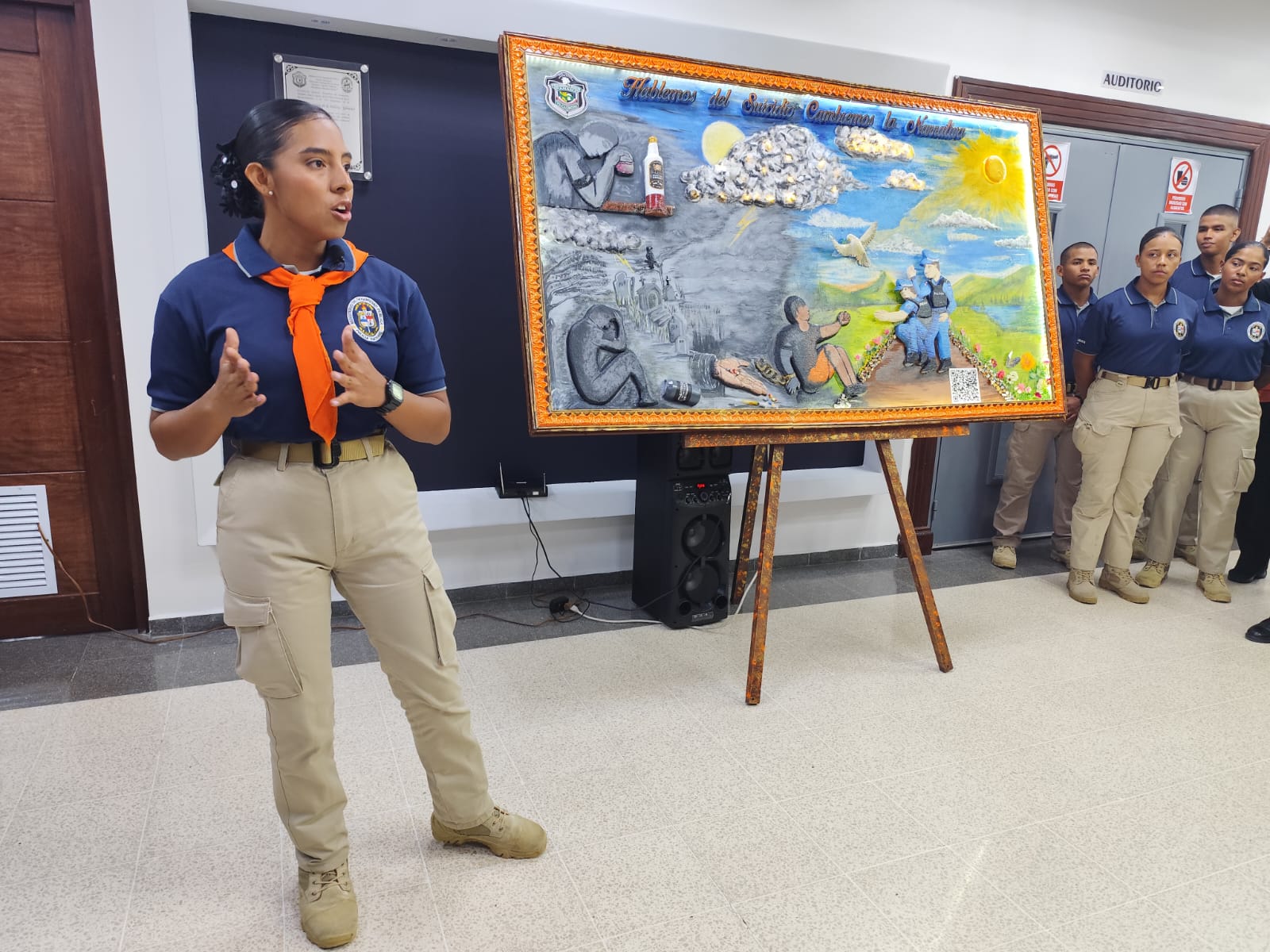 Estudiantes que aspiran a formar parte de los Estamentos de Seguridad y a la Academia Internado Encontrando el Buen Camino participaron del concurso de sociodrama, exposición de murales y canto al trote, en ocasión al “Día Mundial para la Prevención de las Conductas de Riesgos Suicidas”, que se realizó en el Instituto Superior Policial Presidente Belisario Porras.
