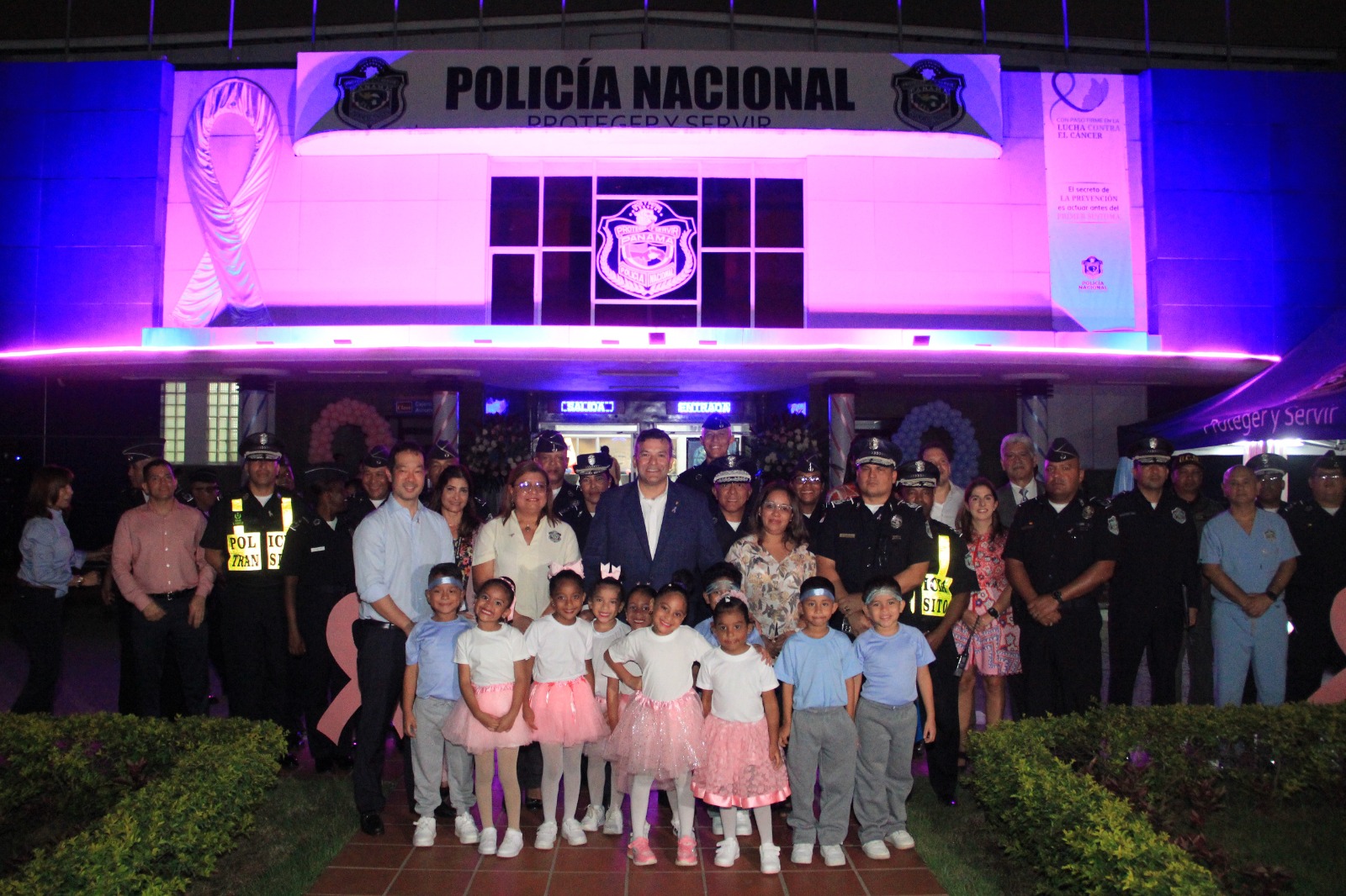 En el marco del mes de la sensibilización sobre el Cáncer de mama y próstata, la Policía Nacional se une a la campaña de la Cinta Rosada y Celeste , bajo el lema “Con Paso Firme en la lucha contra el cáncer” realizando encendido de luces en su sede principal ubicada en el corregimiento de Ancón.
