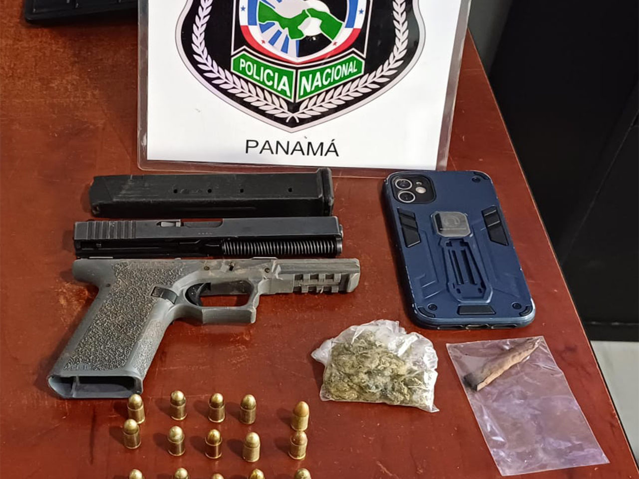 La Policía Nacional en conjunto con el Ministerio Público aprehenden a Miguel Ángel González Arias, uno de los más buscados, requerido por el delito Contra la Vida e Integridad Personal en la modalidad de Tentativa de Homicidio. Además durante la diligencia se le decomisa un arma de fuego tipo pistola, 27 municiones, un proveedor, equipo tecnológico y presunta sustancia ilícita. En el sector de Rana de Oro, corregimiento de Pedregal. Al momento de la aprehensión el sujeto mantenía en su poder un documento de identidad personal cédula que no le correspondía. |