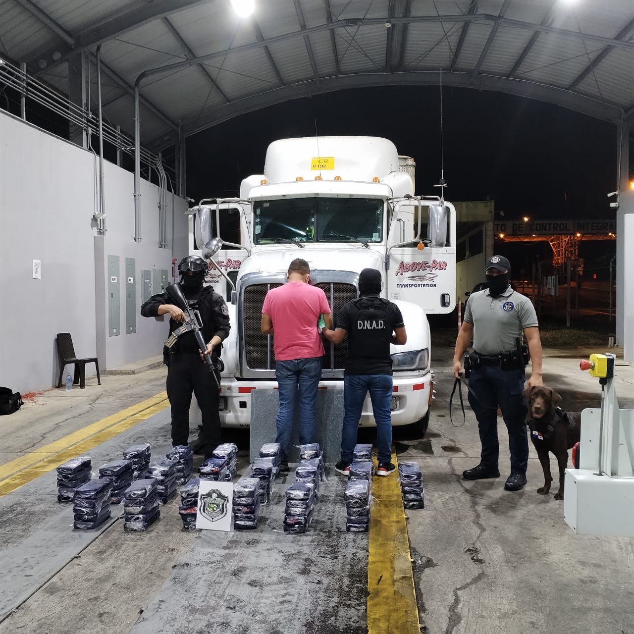 Las unidades de la Policía Nacional a través de las operaciones de registro, mediante perfiles en el Puesto de Control Integral de Guabalá, en lo que va del 2024, han incautado un total de 457 paquetes de presuntas sustancias ilícitas, además, de B/. 182,365.00 en efectivo, dos vehículos reportados como robados, 1,160 cajas de cigarrillos y 80 sacos de ñame, todos de contrabando. Durante los operativos se confiscaron también unos 1,200 bultos de mercancías variadas no declaradas, a las autoridades competentes. El Mayor Melquiades Moreno, Ejecutivo de la Zona de Policía Comarcal, indicó que las acciones permitieron la ejecución de 27 oficios de captura vigentes, emitidos por las autoridades correspondientes, vinculados a delitos varios. Las unidades de DNIP, DNAD y UCAN continúan con sus dispositivos de seguridad con la misión poner a buen recaudo a los transgresores de la Ley. Las acciones operativas incluyen la verificación superficial de vehículos y personas, con tecnología avanzada como el escáner de carga y caninos detectores de narcóticos, armas de fuego, explosivos y divisas, asegurando una revisión exhaustiva de transportes nacionales e internacionales. |