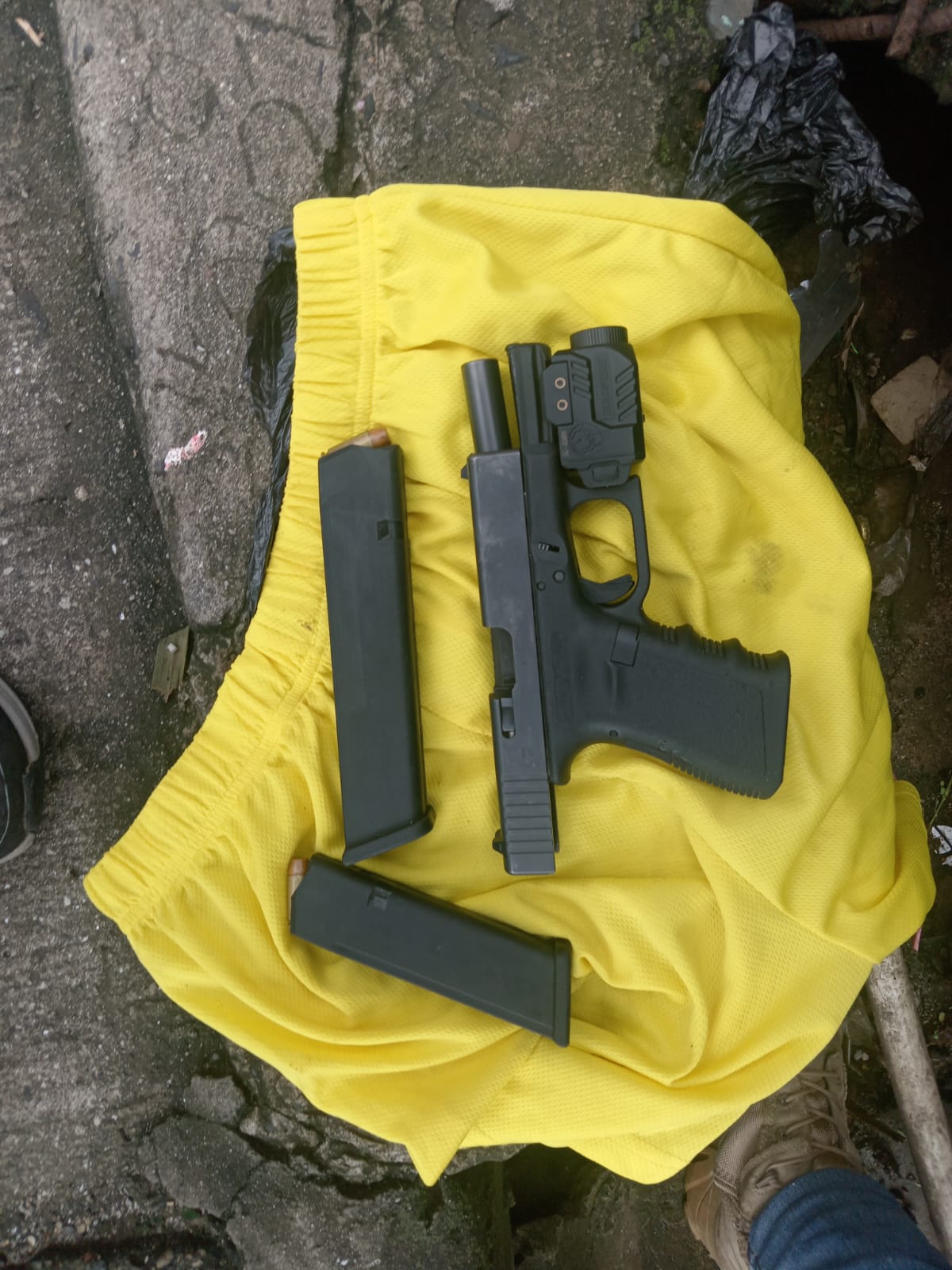 Luego de acciones operativas y de inteligencia, realizadas por la Policía Nacional en el sector de Panamá Viejo del corregimiento de Parque Lefevre, se dio con el hallazgo de un arma de fuego, previamente embalada en un cartucho plástico de color negro y oculta en un desagüe. Se trata de un arma de fuego tipo pistola con dos municiones y dos proveedores con 33 municiones, indicios estos que fueron puestos a órdenes de las autoridades judiciales correspondientes a fin de iniciar las investigaciones. La Policía Nacional reafirma su compromiso con la ciudadanía panameña para combatir el delito en todas sus modalidades a fin de garantizar la seguridad en todas las comunidades. |