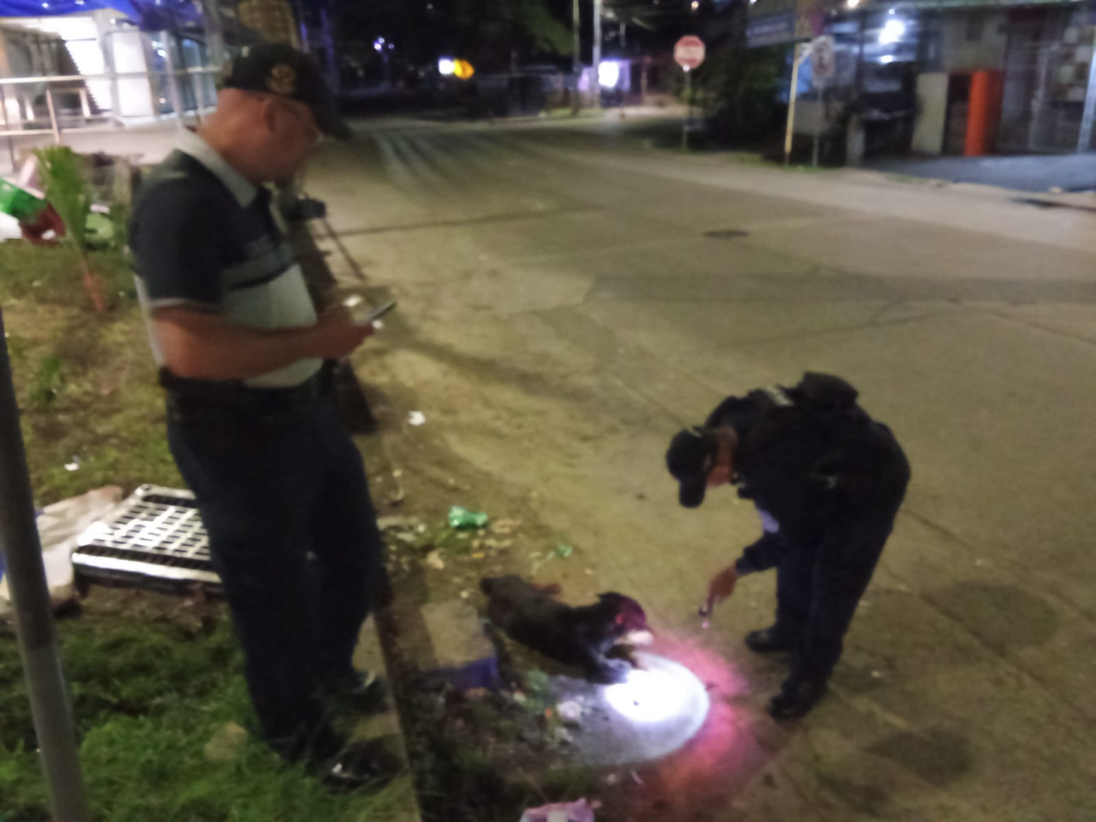 El can fue observado, lastimado en la calzada de rodamiento ubicada frente a la Zona Paga de Los Andes No. 2, por lo que inmediatamente se procede a llamar a los miembros de la Unidad Canina de la Policía Nacional quienes se hacen presente en el lugar de los hechos.