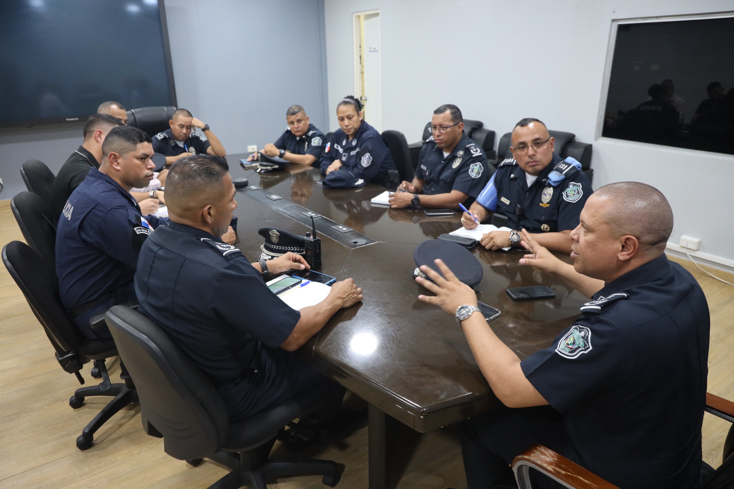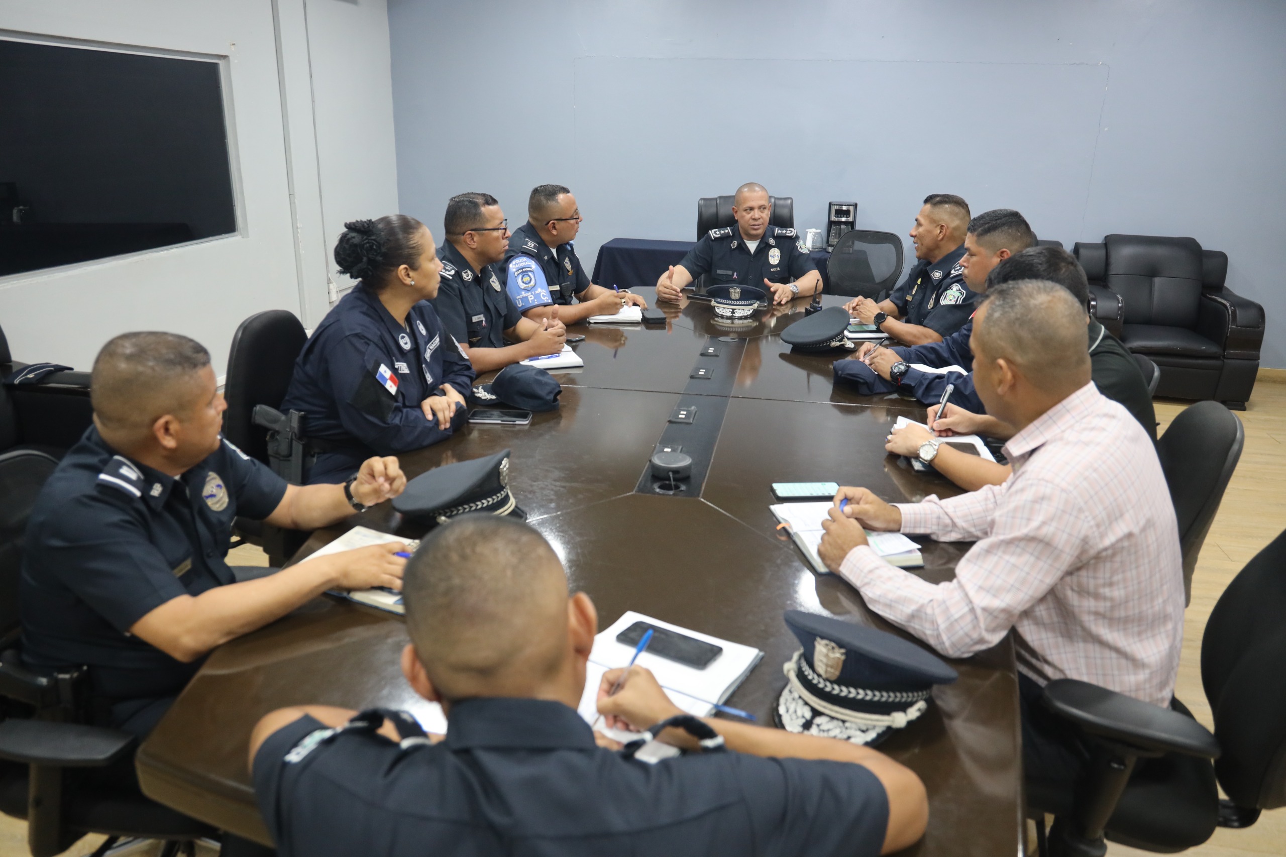El Director Nacional de Seguridad Ciudadana, Comisionado Edgardo Núñez junto a su equipo de trabajo se reúne con el Jefe de la Zona Metropolitana, Subcomisionado Reyes González.