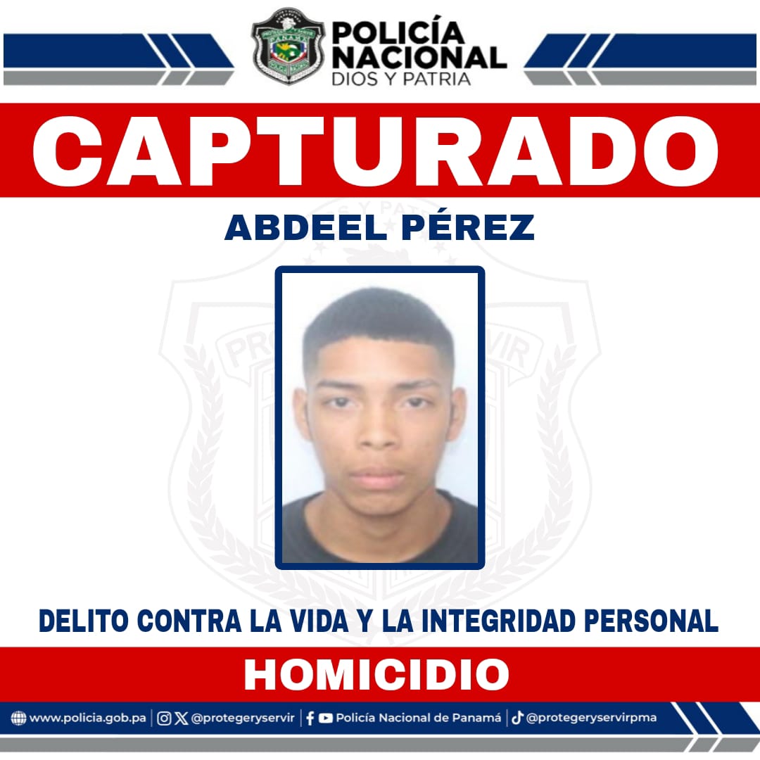 Asimismo, se da con la captura de Abdeel Pérez quien figura en la lista de los más buscados en la provincia de Colón, por delito de Homicidio, hecho registrado el 13 de septiembre 2023 en el sector de Río Gatún. Al momento de su aprehensión, intentó darse a la fuga por área boscosa, siendo perseguido y capturado por las unidades.