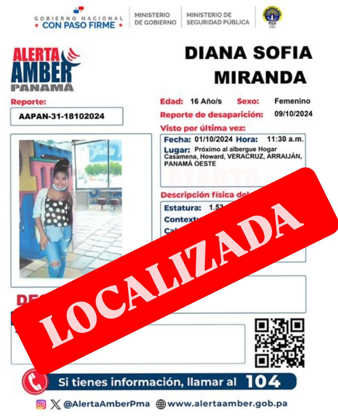 El Subcomisionado Frank Méndez, Jefe de la Zona Policial del Canal indicó que la menor de edad fue localizada en la barriada Génesis, en el sector Kuna Nega. Luego de su desaparición publicada tras Alerta Amber.