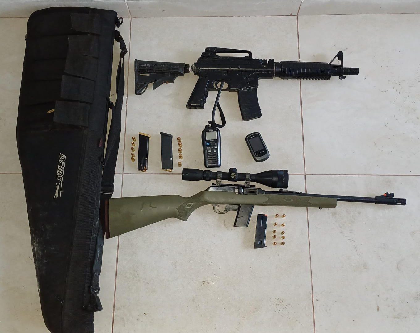 En otra diligencia se da con el hallazgo de un arma de fuego tipo rifle con mira telescópica, tres proveedores y 40 municiones de diferentes calibres. Asimismo, se ubica una réplica de fusil, un dispositivo GPS y un radio Satélite.