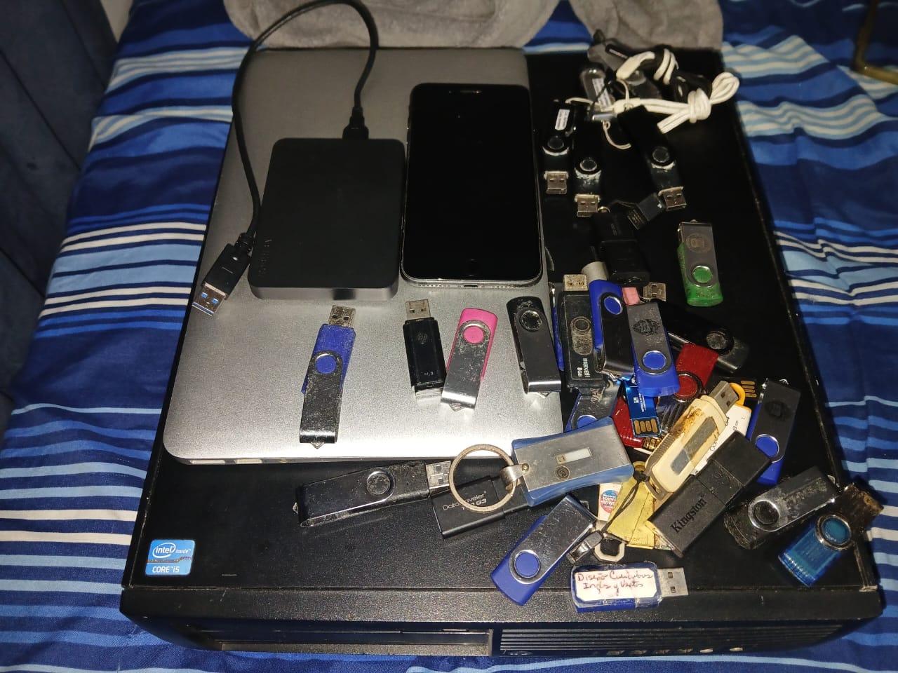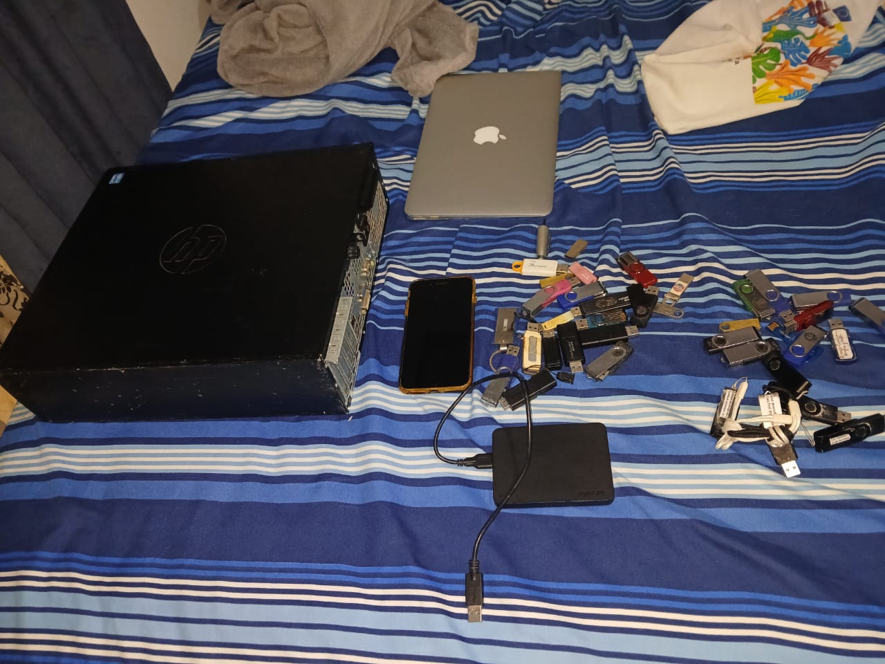En la diligencia de allanamiento a la residencia se ubican gran cantidad de dispositivos de almacenamientos de información, celulares y laptops.